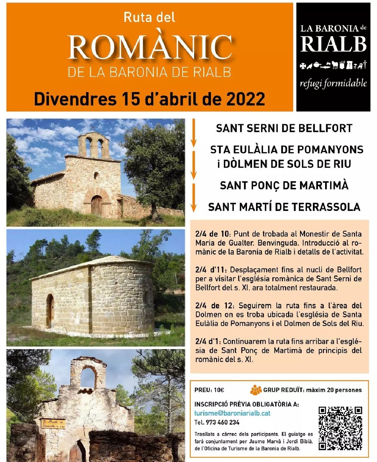 La proposta començarà a 2/4 de 10 del matí al Monestir de Santa Maria de Gualter, que també és la seu de l'oficina de turisme, on els visitants podran seguir una introducció al Romànic de la Baronia, i els detalls de l'activitat.