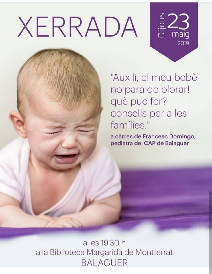 La Biblioteca Margarida de Montferrat acollirà aquest dijous dia 23 de maig la Xerrada 'Auxili, el meu bebè no para de plorar! què puc fer? Consells per a les famílies'