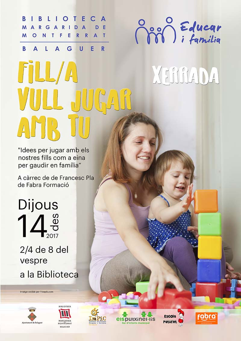 La biblioteca Margarida de Montferrat acollirà demà dijous la xerrada "Fill/a, vull jugar amb tu !".