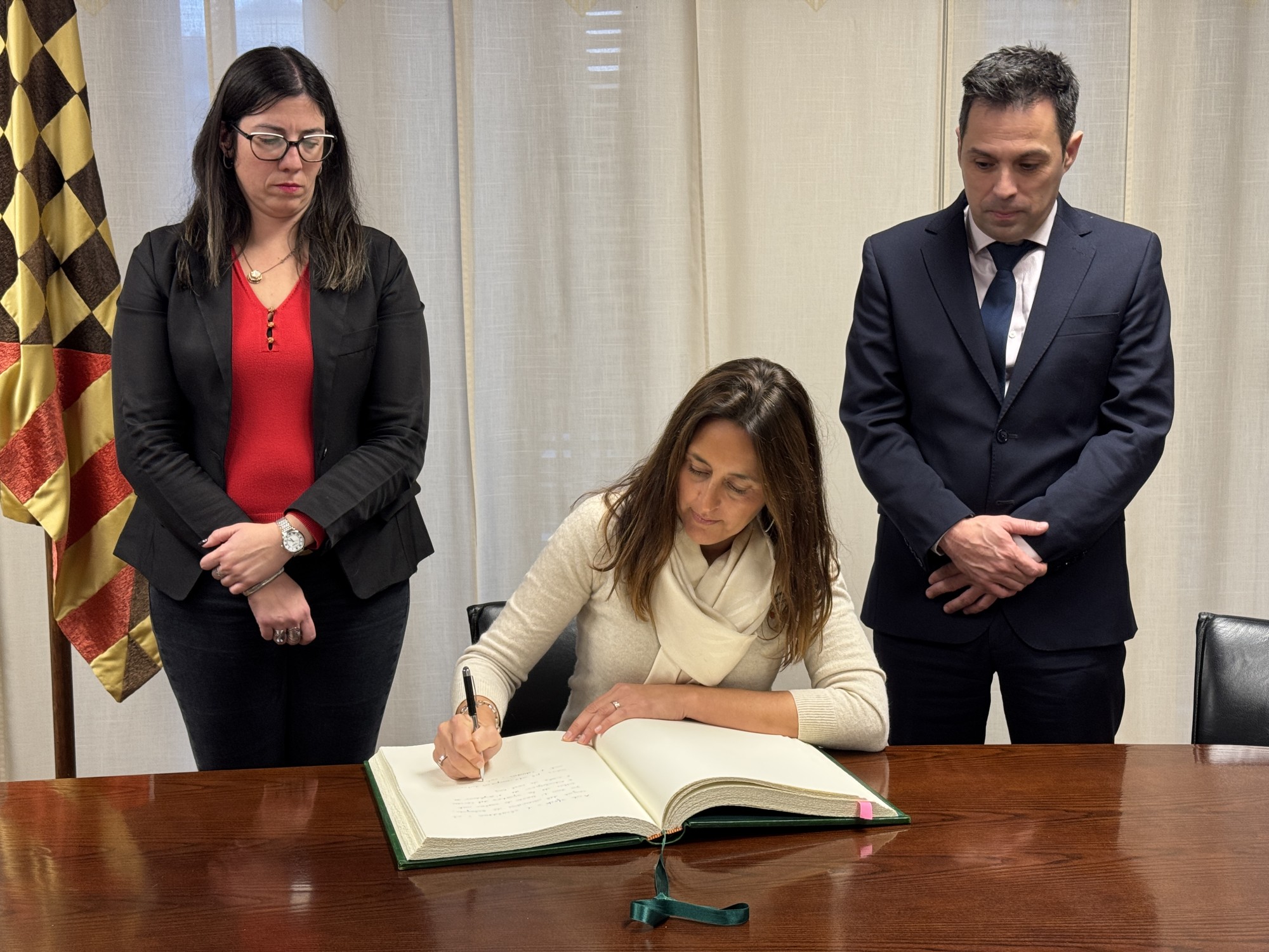 A l’interior de l’Ajuntament, Niubó ha signat el Llibre Verd de la ciutat abans de mantenir una reunió privada amb la direcció de Gaspar de Portolà, que ha exposat els efectes que tindrà el tancament: pèrdua de personal, menys recursos i l’afectació directa a les famílies que ja tenen altres fills escolaritzats al centre. La Paeria defensa que el padró i les previsions d’inscripcions per als propers cursos permetrien mantenir les dues línies, i havia proposat fixar ratios reduïdes com a prova pilot.