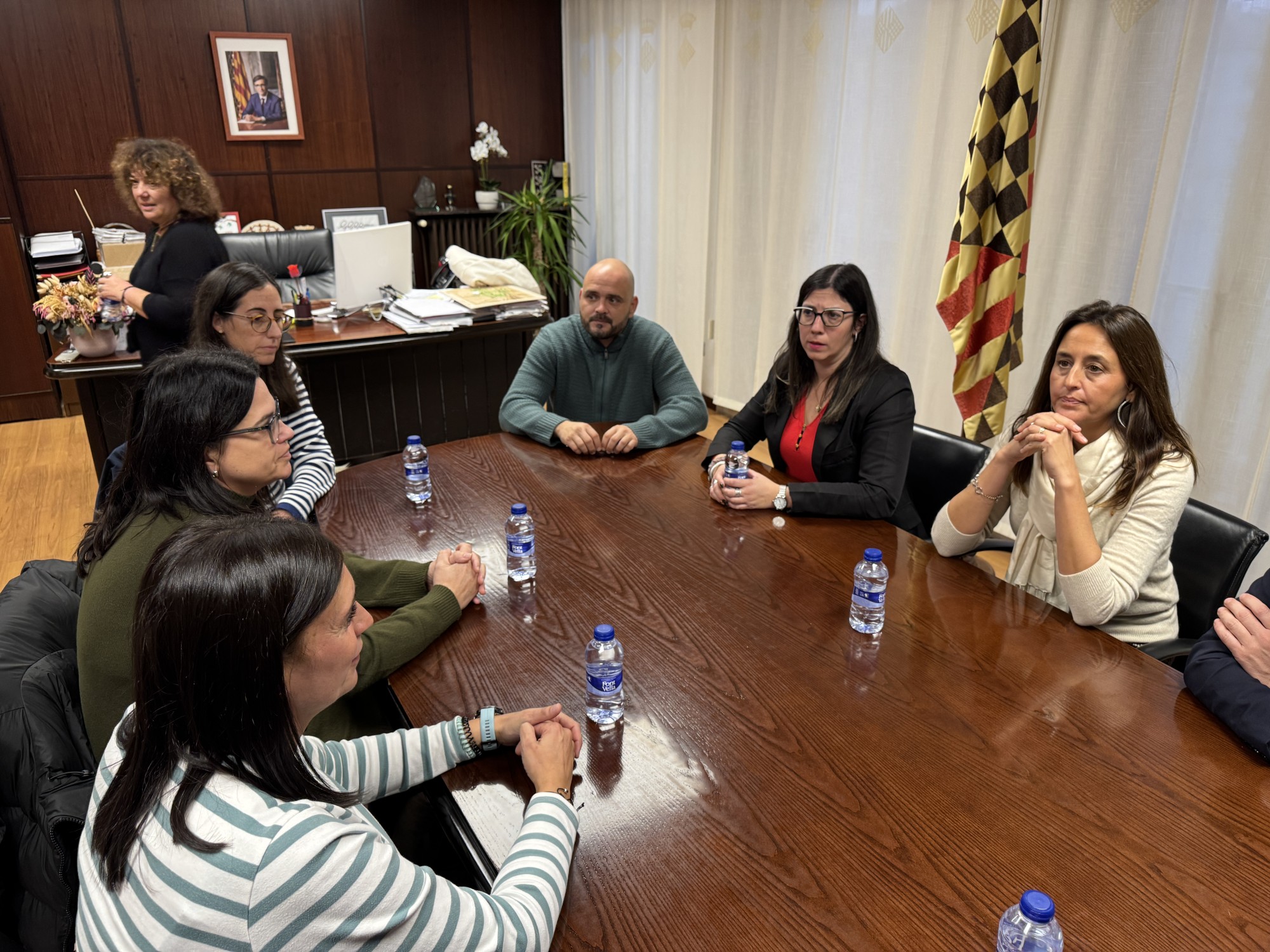 Seguidament s’ha desplaçat fins a la Paeria on ha mantingut una reunió amb membres de l’equip directiu de l’escola Gaspar de Portola, que li han expressat la seva oposició al tancament d’una línia d’I3 al centre