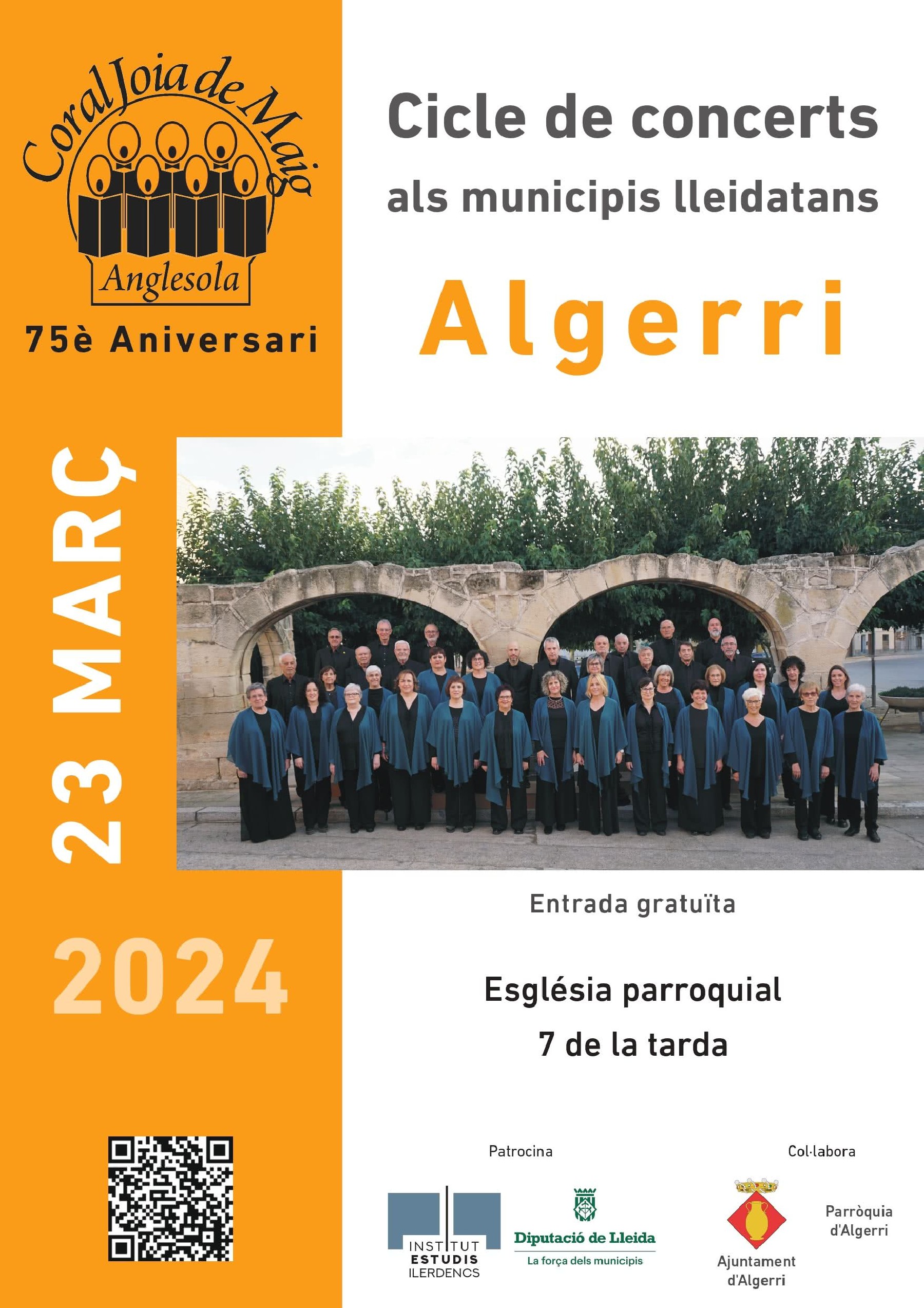 La Coral Joia de Maig d'Anglesola actuarà aquest dissabte a Algerri dins el cicle de concerts als municipis lleidatans de l'IEI