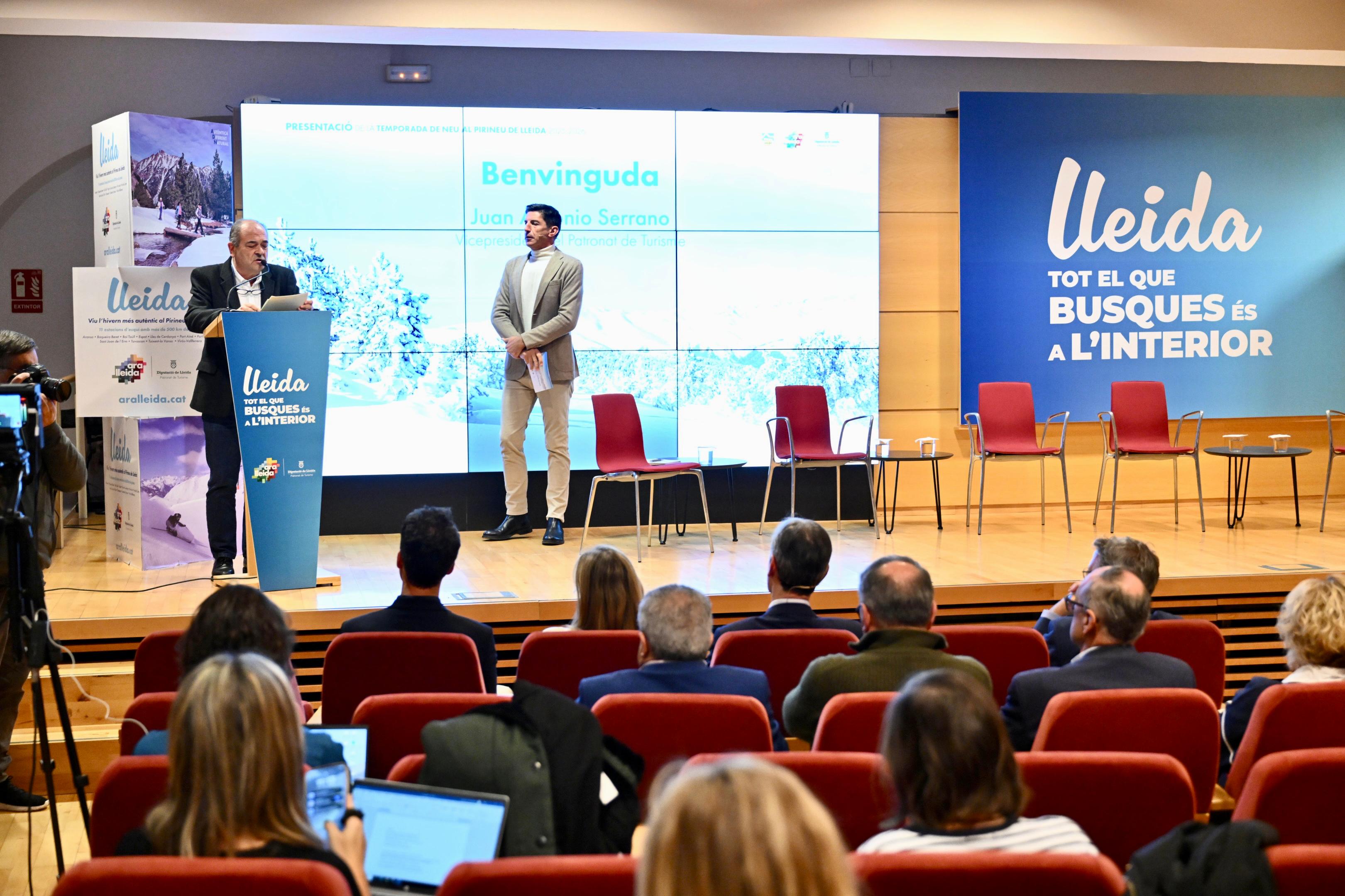 El president de la Diputació de Lleida, Joan Talarn, acompanyat del vicepresident del Patronat de Turisme, Juan Antonio Serrano, ha presidit aquest dimecres la presentació de la nova temporada de neu al Pirineu de Lleida. Talarn ha explicat que aquesta campanya comença amb l’objectiu de “consolidar els més d’1,4 milions de forfets venuts, cosa que suposaria repetir els bons resultats de les últimes quatre temporades”. El president ha destacat també que les estacions van generar la temporada passada un impacte econòmic directe d’uns 317 milions d’euros a la Val d’Aran, l’Alta Ribagorça, el Pallars Sobirà, el Solsonès, l’Alt Urgell i la Cerdanya. Així mateix, Talarn ha apuntat que els 11 complexos d’esquí alpí i nòrdic han invertit 14,40 milions d’euros en millores per aquesta temporada.