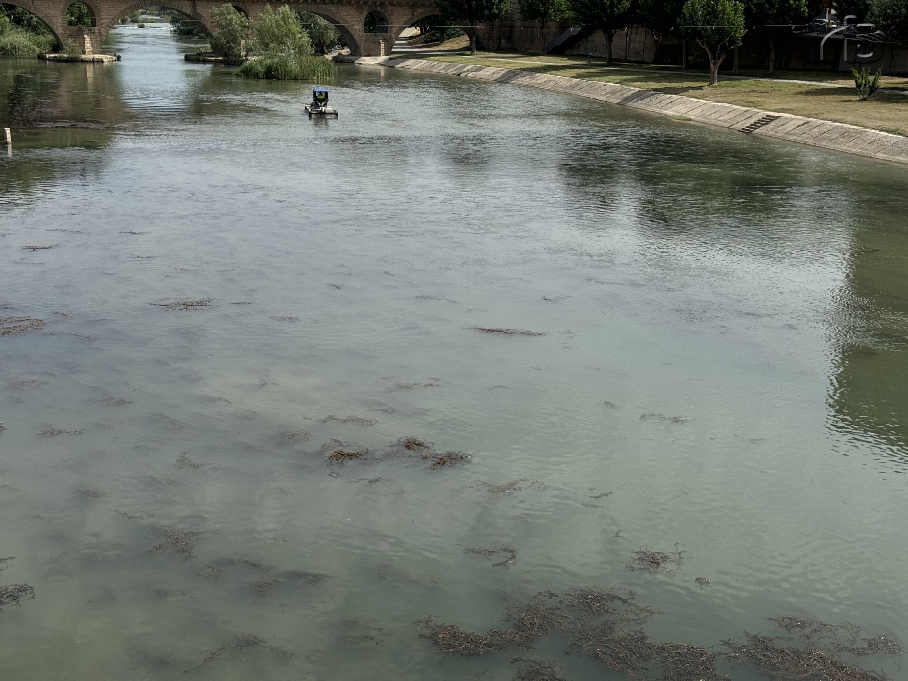 Les tasques les duu a terme una empresa especialitzada que ha començat a actuar aquesta setmana amb un vehicle amfibi, amb l'objectiu de netejar l'abundant quantitat d'algues que aquests darrers dies s'han acumulat a una bona part del tram del riu.