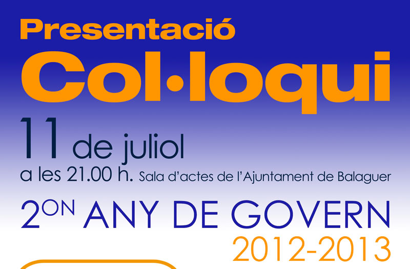 Aquesta presentació-col.loqui d'aquest segon any de legislatura tindrà lloc a les 21h a la Sala d'Actes de l'Ajuntament.