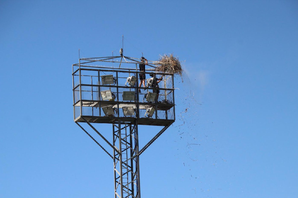 L'àrea de Medi Ambient de la paeria ha procedit aquest dimecres a la retirada dels nius de cigonya de les torres d'il•luminació del camp de futbol de Balaguer.