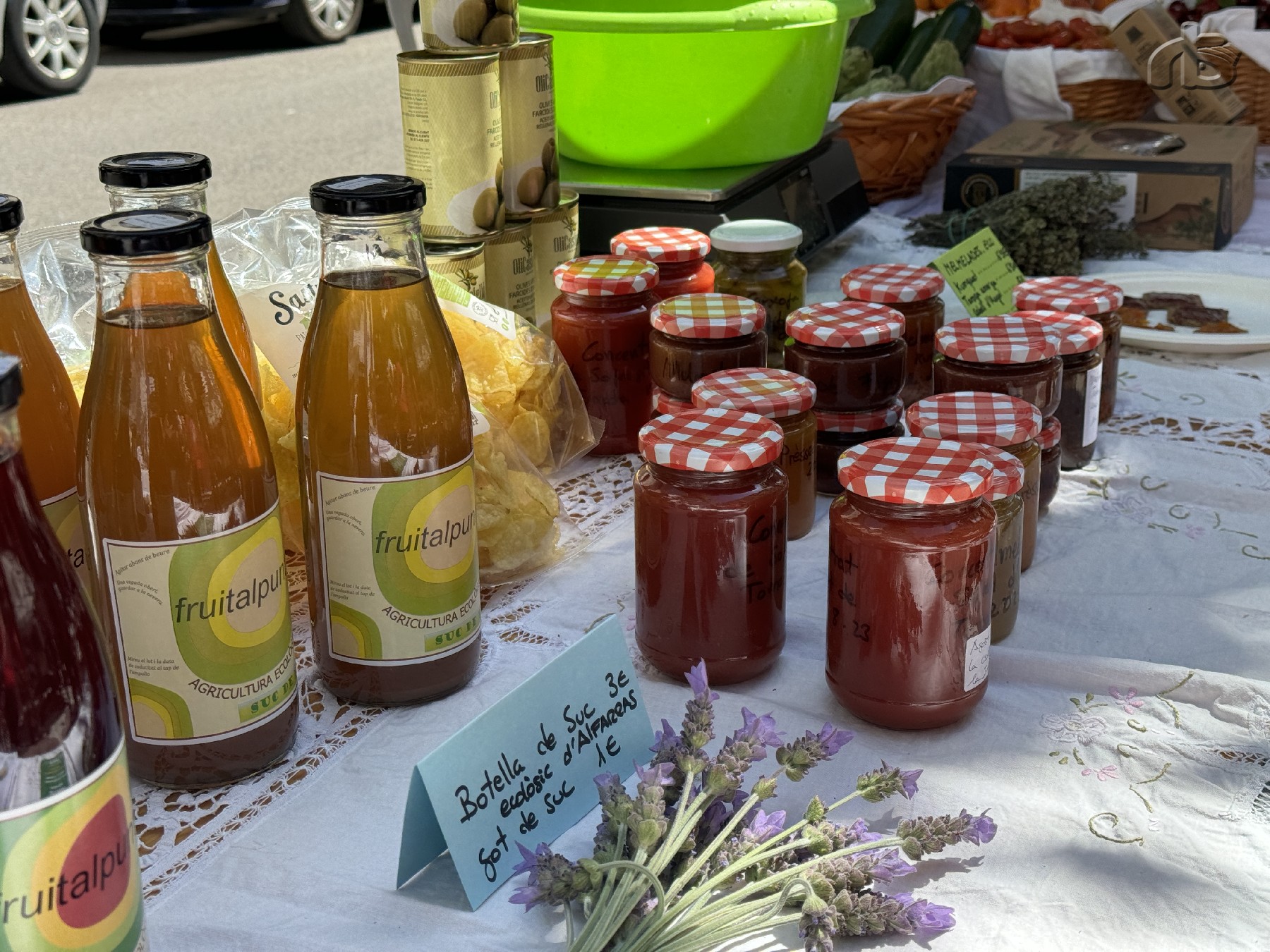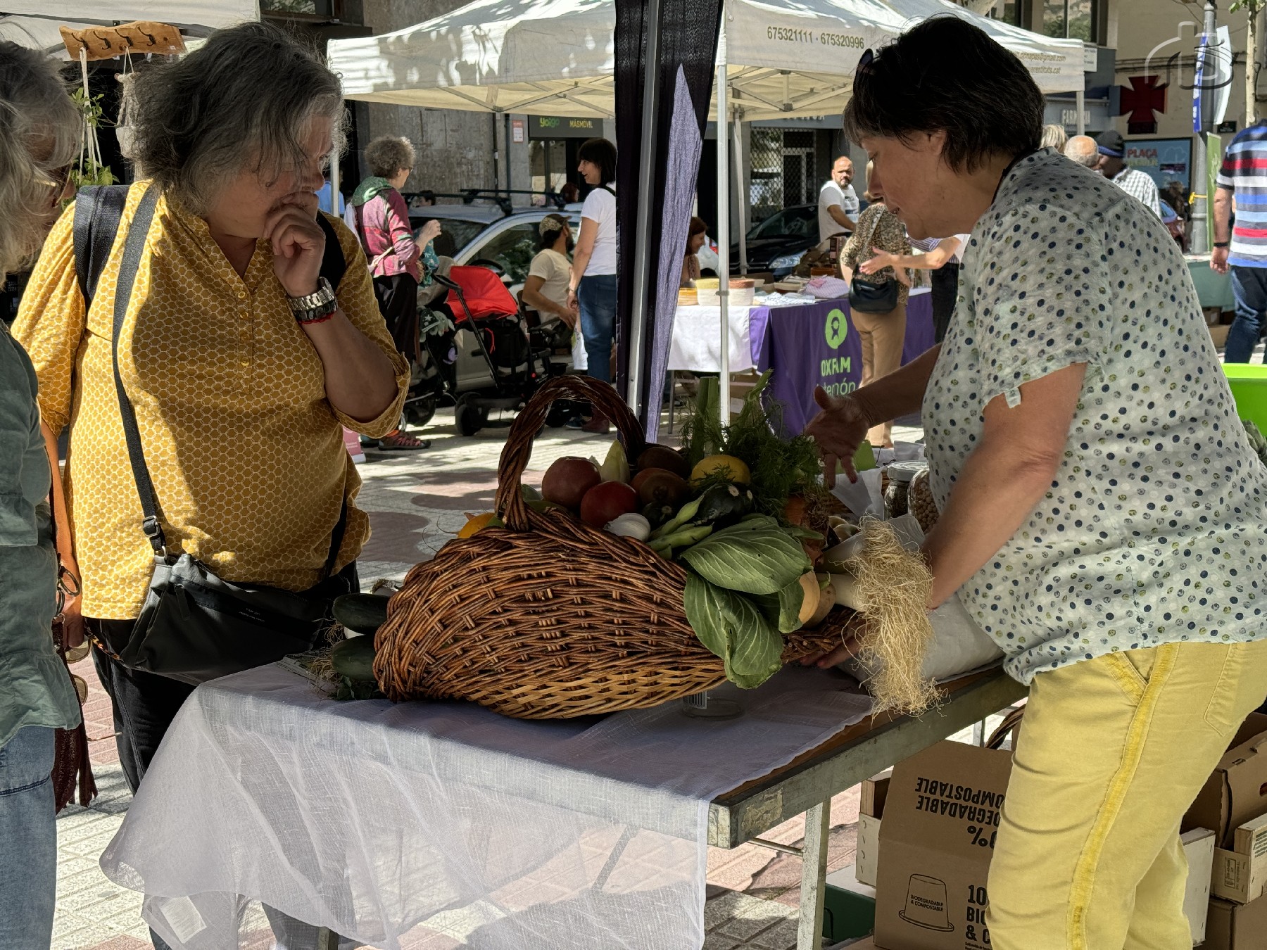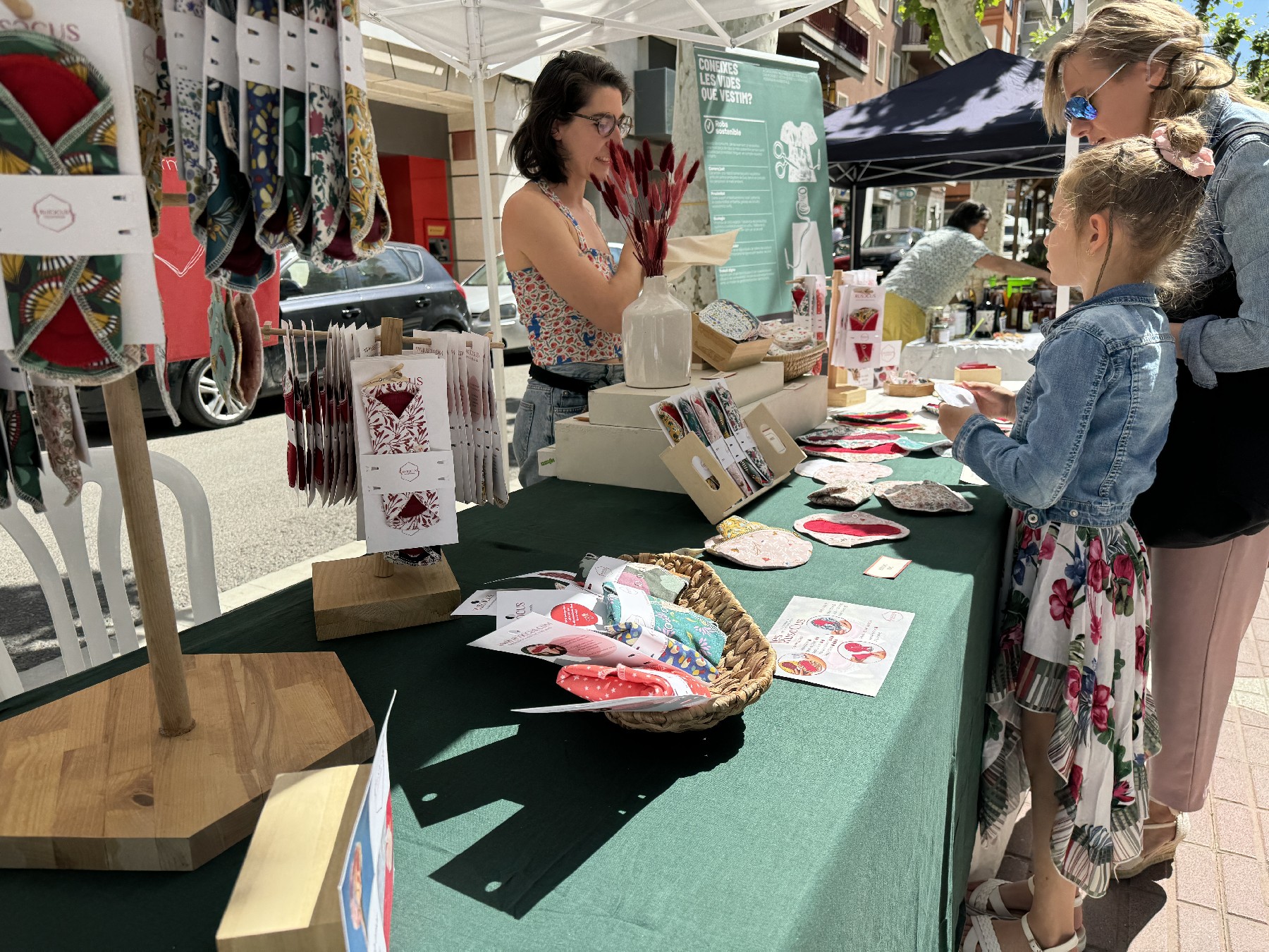 Durant tot el matí al Passeig de l'Estació s'han pogut trobar un mercat amb prop d'una desena de parades amb productes de proximitat com poden ser fruites i verdures, roba o artesania.