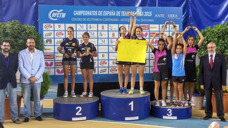 L'actuació més lluïda, però, ha estat en la modalitat de dobles, on la parella formada per Gemma Lladonosa i Vinyet Solans han guanyat en setzens a les andaluses Marina i Yanira Sánchez per 3 a 1. Després, a vuitens, han guanyat a les catalanes Claudia Curquejo i Adriana Breva també per 3 a 1 i, en quarts s'han imposat a les castellanes Cèlia Delgado i Andrea Chaves per 3 a 0. En semifinals han guanyat a les madrilenyes Ainhoa Cristobal i Lorena Gil per un treballat 3 a 2, i només han caigut a la final, davant les andaluses Isabel Rodríguez i Andrea Pérez per 0 a 3, obtenint així, per primera vegada en la història del tennis taula lleidatà, el sotscampionat d'Espanya.