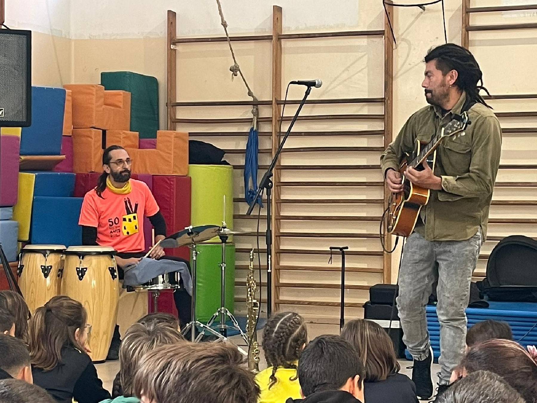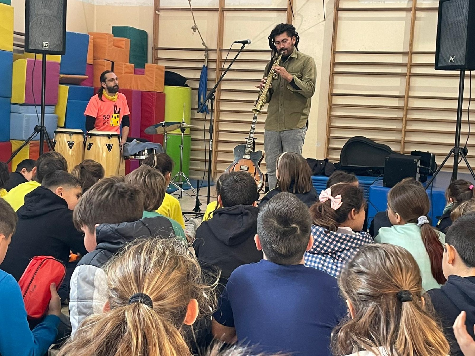 Aquest dijous al matí ha visitat l'escola el músic Roberto Chibuque, guitarrista i saxofonista colombià resident a Vallfogona de Balaguer.