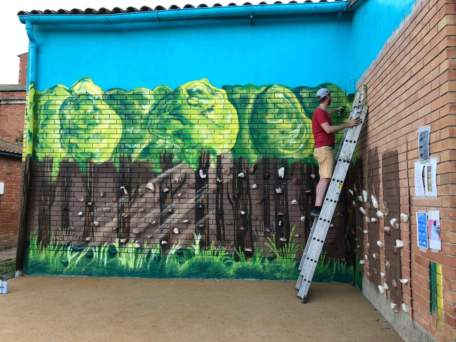 L'escola La Noguera pinta les parets del nou rocòdrom gràcies a un projecte inclusiu dut a terme entre l'escola i l'Ampa. El alumnes més grans del centre acabaran l'obra artística aquest proper cap de setmana