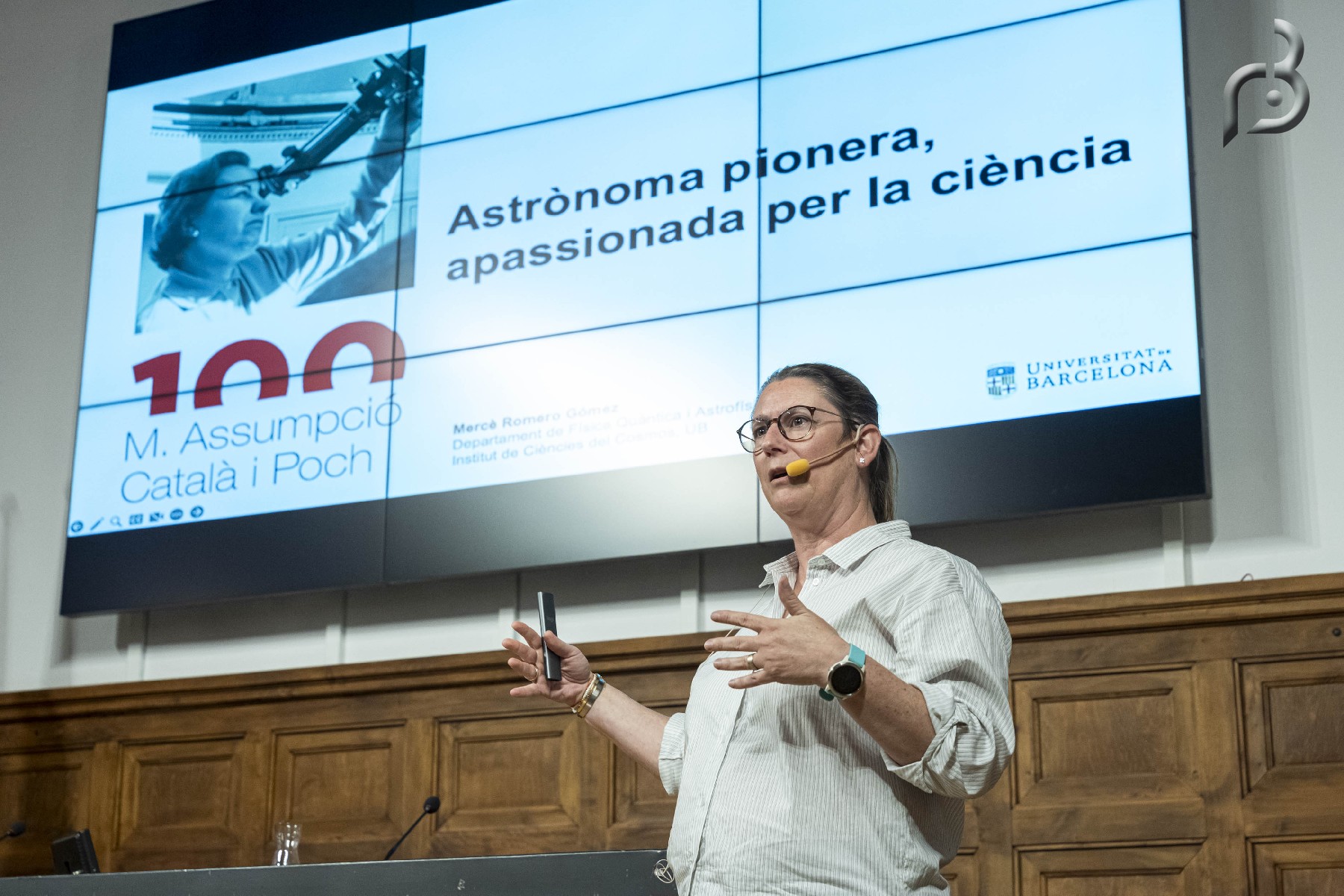 Durant la seva intervenció, la doctora Mercè Romero ha repassat la trajectòria d'aquesta científica pionera, que el 1971 es va convertir en la primera dona a doctorar-se en matemàtiques a la Universitat de Barcelona, i el 1975, en la primera professora numerària astrònoma de l'Estat espanyol.