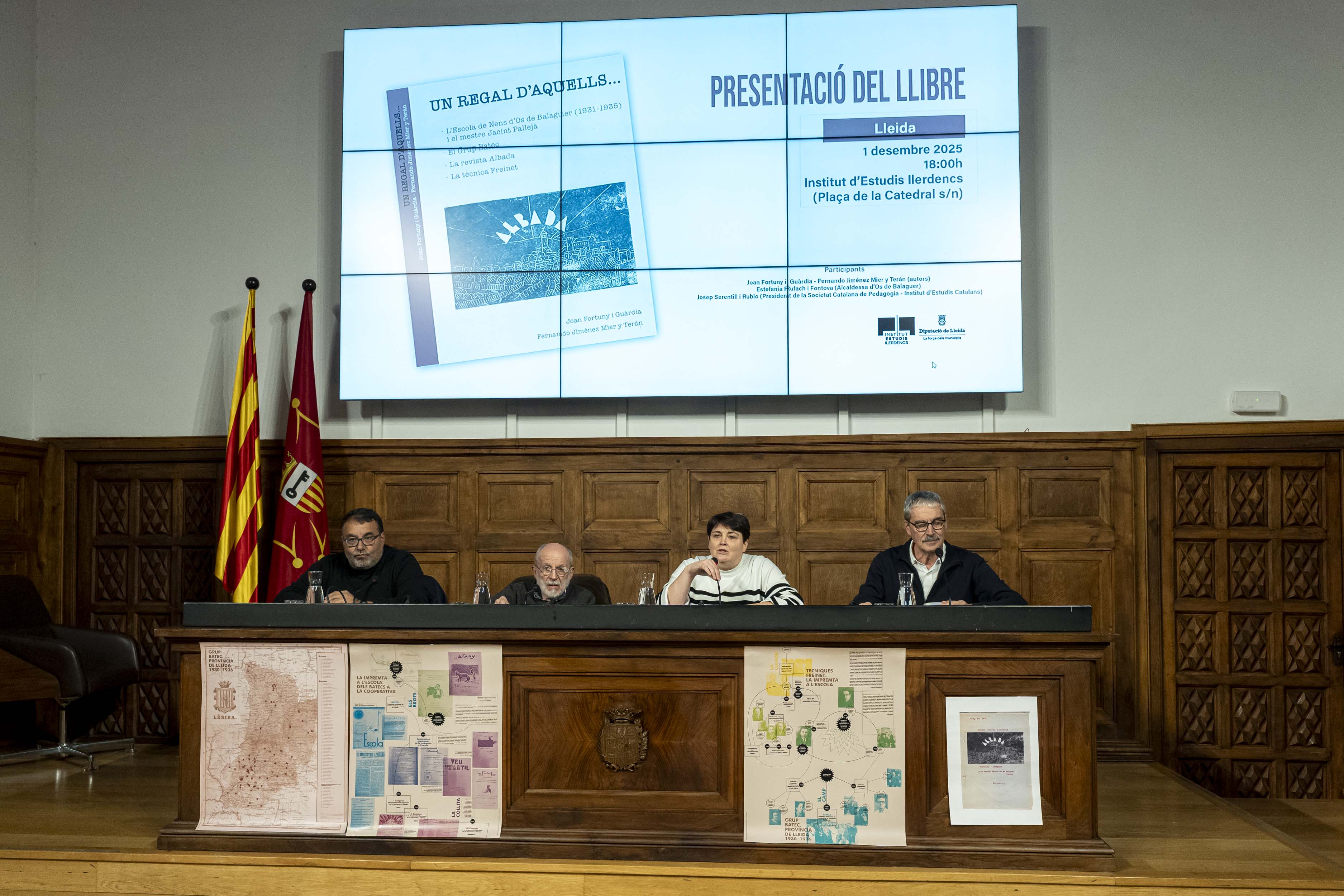 L’Aula Magna de l’Institut d’Estudis Ilerdencs ha acollit aquest dilluns la presentació d’‘Un regal d’aquells...’, un llibre de Joan Fortuny i Fernando Jiménez publicat en el marc del centenari del Grup Batec i vinculat al projecte del Museu d'Educació de Catalunya.