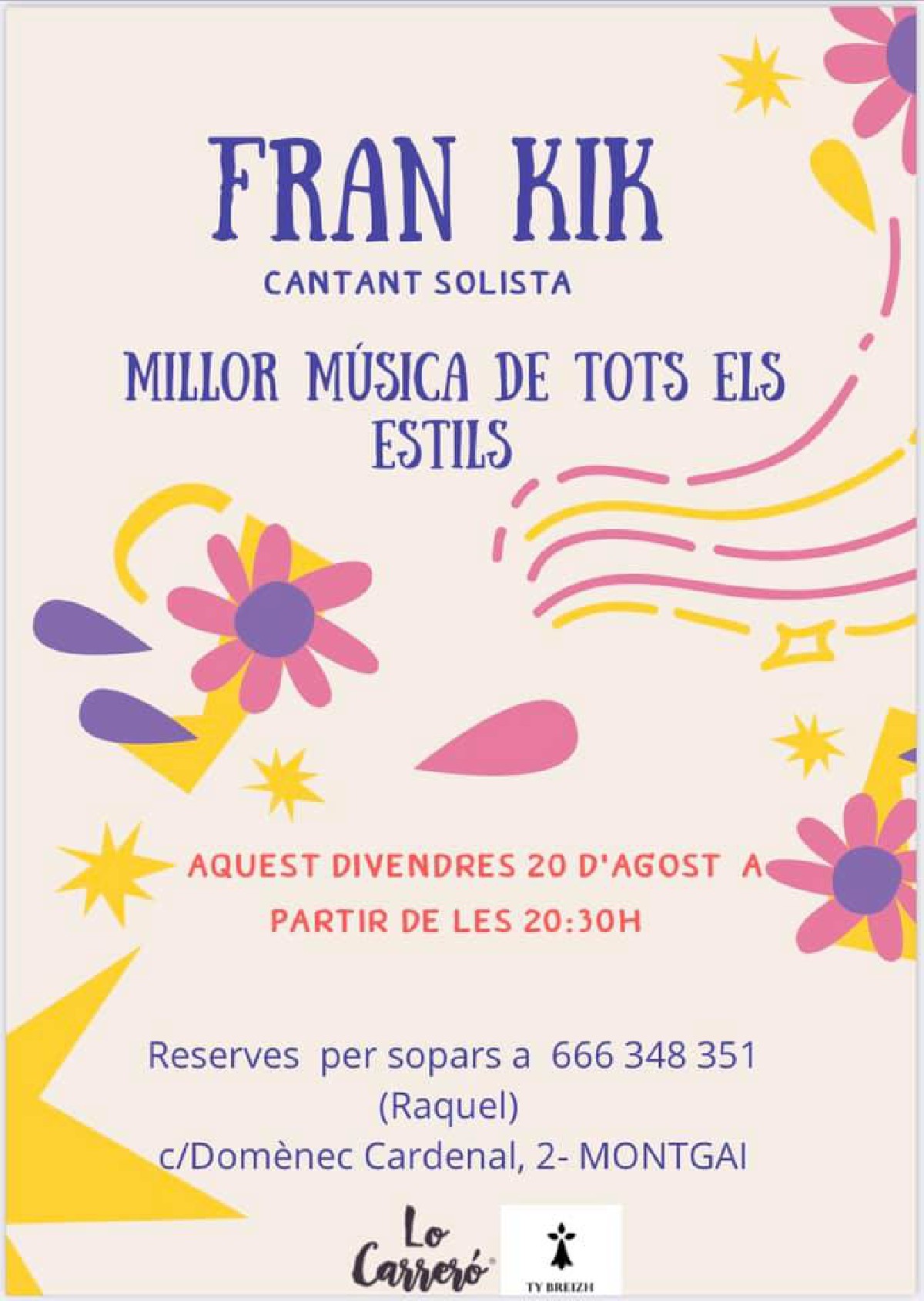 Divendres es farà un concert amb Frank Kik, a partir de 2/4 de 9 del vespre.