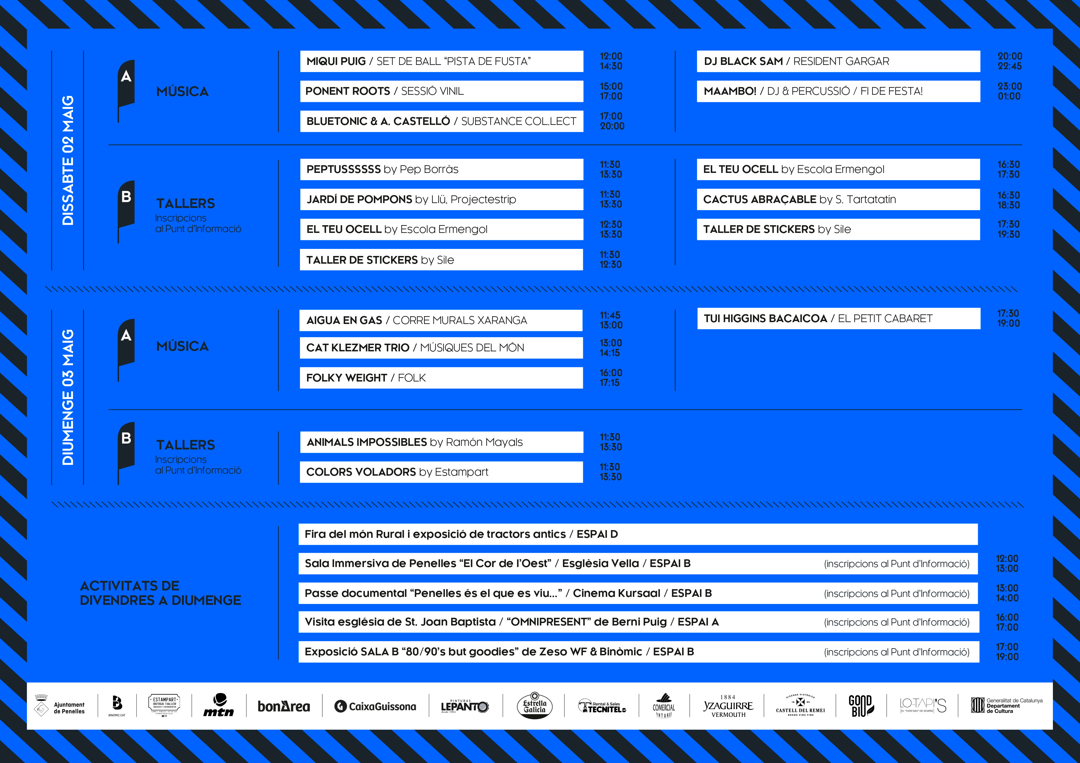 El gruix de la programació tindrà lloc a partir de divendres, amb tres dies intensos d’activitats que combinaran intervencions murals, tallers participatius i propostes culturals i festives per a tots els públics. El vessant participatiu tornarà a tenir un paper destacat amb l’Espai Tallers, situat a la Placeta de l’Església Vella, concebut com un entorn obert on petits i grans podran experimentar amb l’art, crear en comunitat i deixar volar la imaginació.