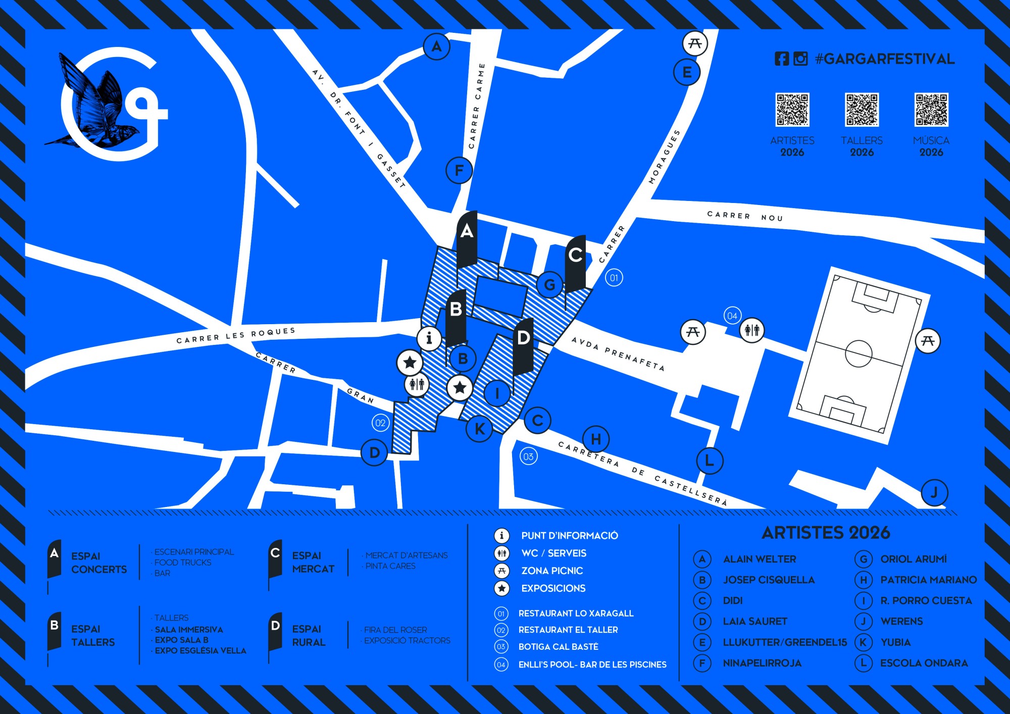 La jornada de diumenge tindrà un protagonisme especial amb la coincidència amb les Festes del Roser, la Festa Major Petita de Penelles, origen del mateix Gargar. Aquesta combinació permetrà unir art contemporani i tradició popular en una mateixa celebració, amb activitats com la trobada de tractors antics, l’esmorzar popular, l’ofrena floral o la cercavila pels carrers del municipi. Bergós ha remarcat que aquesta jornada simbolitza la convivència entre modernitat i arrelament, un dels trets distintius del festival.