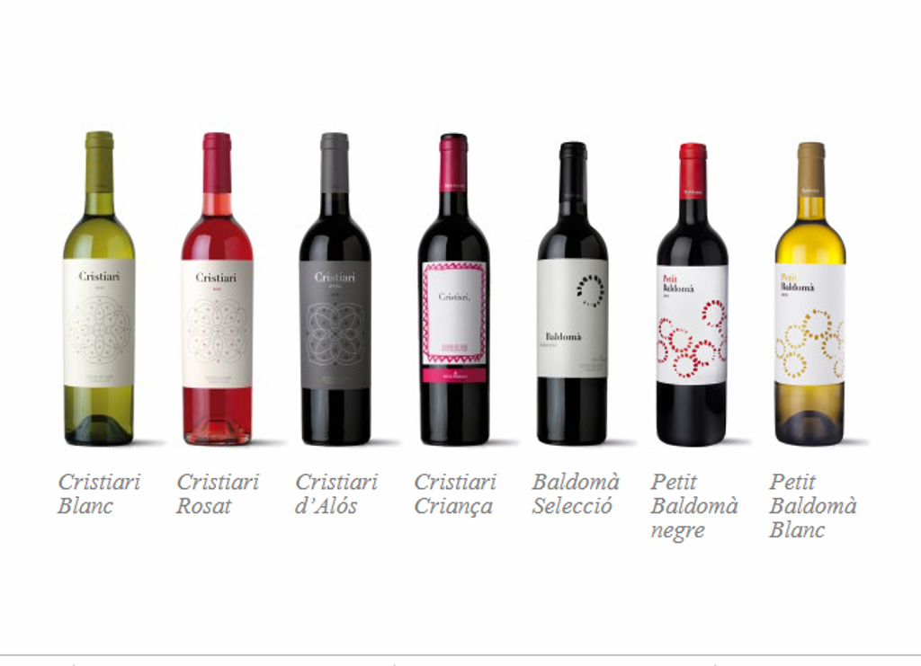- La dels Cristiari, productes especials que projecten la voluntat de diferenciació i d'identificació amb l'origen. En aquest grup podem trobar els vins Cristiari Blanc, Cristiari Rosat, Cristiari d'Alós i Cristiari Criança.