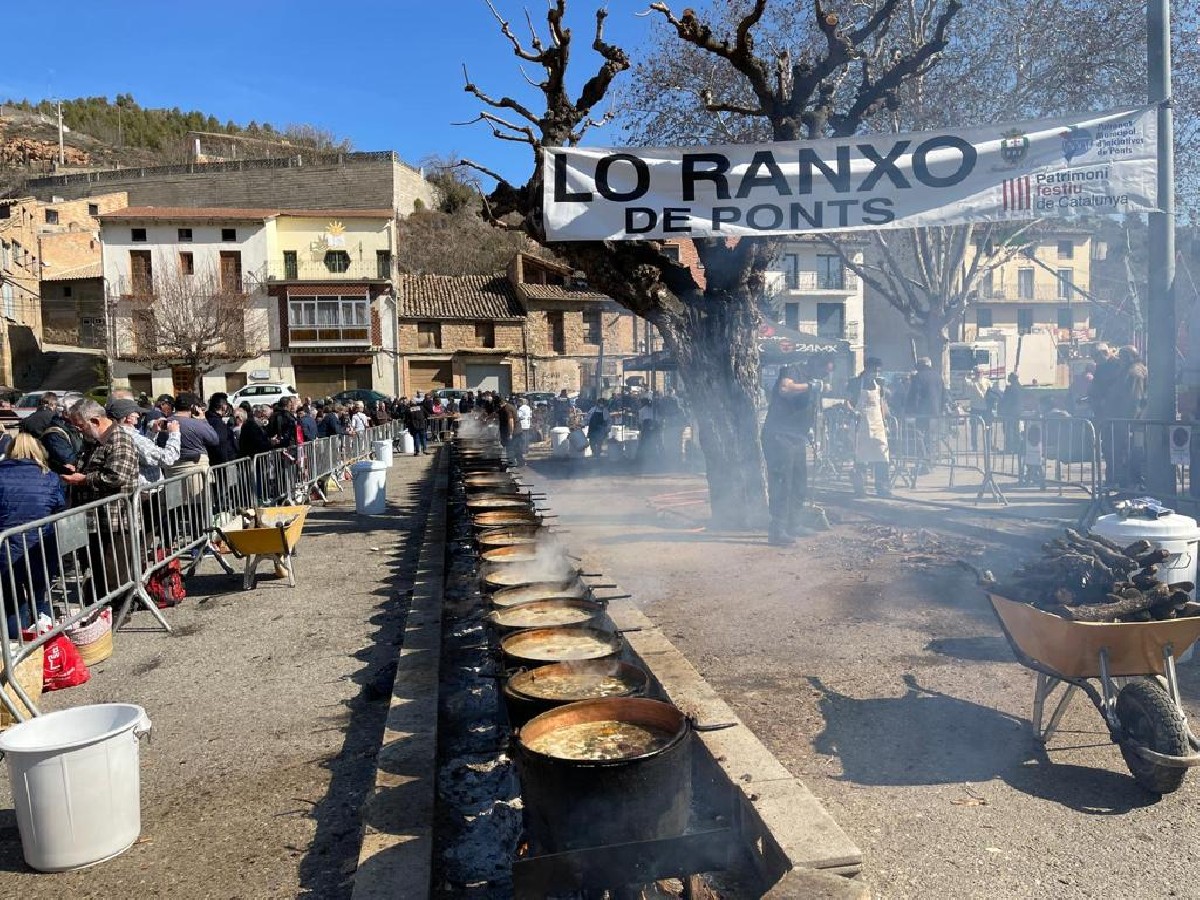 Ponts ha recuperat aquest dimarts la festa del Ranxo, amb la qual la localitat tanca el gruix dels actes de Carnaval. Les 58 calderes on es preparen entre 10.000 i 12.000 racions d'aquest àpat típic d'hivern han deixat enguany l'avinguda Font de Valldans per traslladar-se, uns metres més enllà, a la plaça del Portalet. D'aquesta manera, es busca que els assistents a la celebració tinguin més espai i, per tant, no es produeixin tantes aglomeracions.