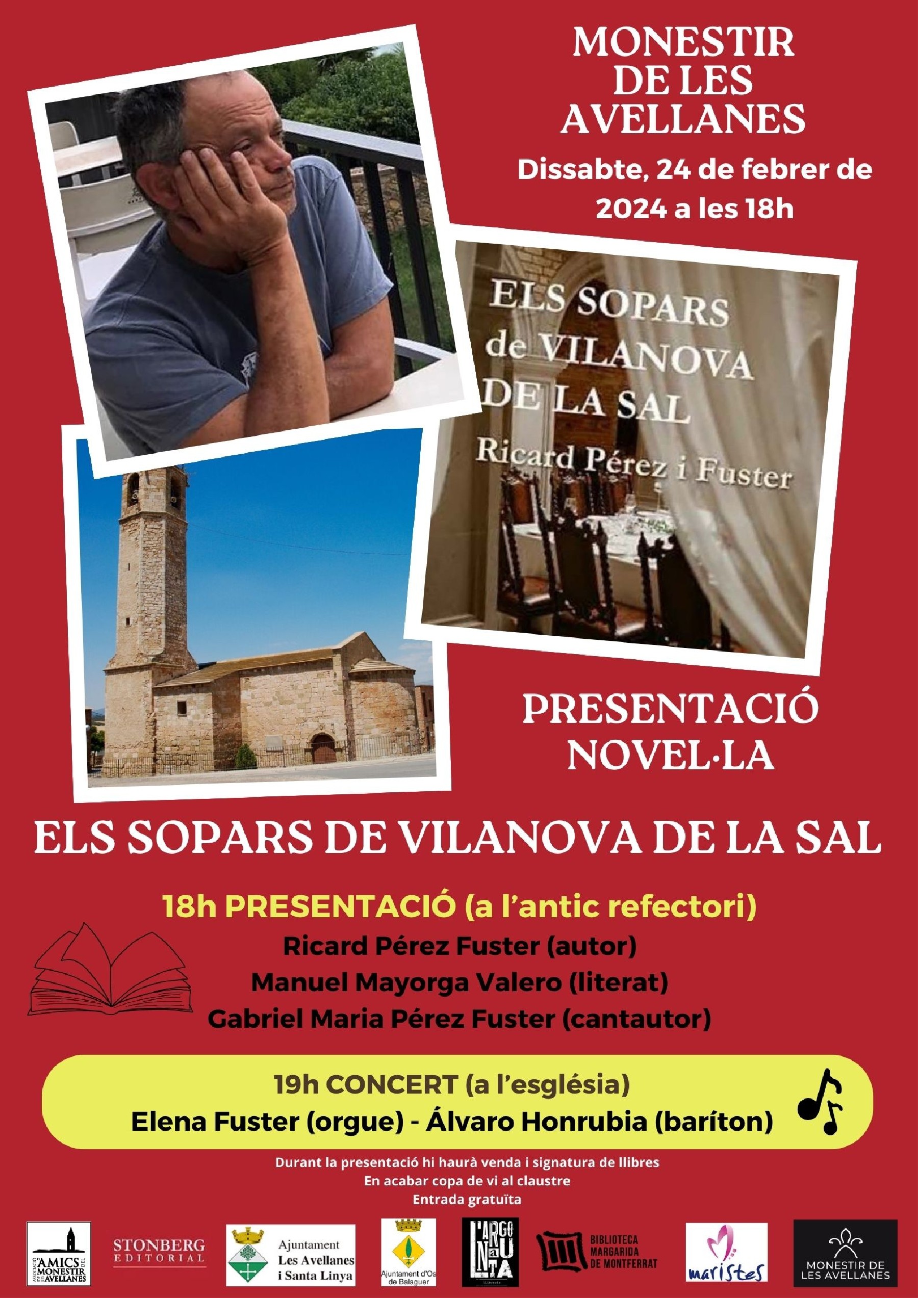 El dissabte 24 de febrer a les 18h el Monestir de les Avellanes acollirà l'acte de presentació de la novel·la "Els sopars de Vilanova de la Sal" de l'escriptor Ricard Pérez i Fuster.