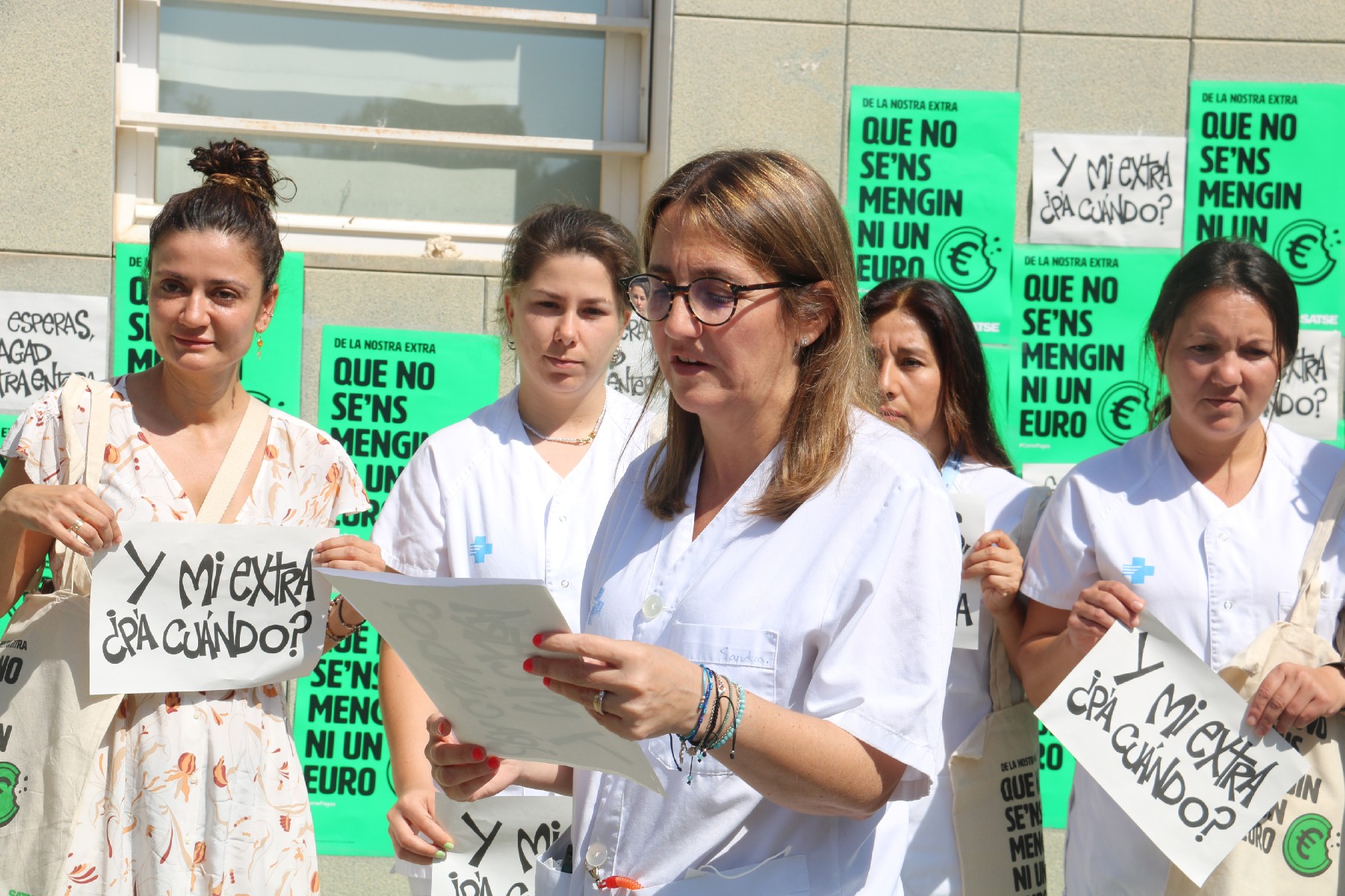 Infermeres, llevadores i fisioterapeutes s'han concentrat aquest dijous a les portes de quatre centres sanitaris de Lleida, Tarragona, Girona i Barcelona per reclamar al Govern que acabi amb les retallades de les pagues extraordinàries. Sota el lema 'De la nostra extra, que no se'ns mengin ni un euro', les concentracions s'han organitzat al CAP Bordeta-Magraners, a l'hospital Joan XXIII, a l'hospital Josep Trueta i a l'hospital Vall d'Hebron. Els professionals sanitaris han denunciat que han perdut 30 pagues des del 2010, l'equivalent a uns 11.000 euros. Per això, reclamen recuperar l'import íntegre de les pagues extres per a tots els professionals de la sanitat pública en la pròxima Llei de Pressupostos Generals de l'Estat.