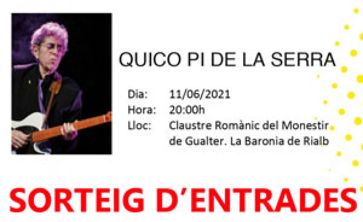 Serà una ocasió única de tornar a veure el guitarrista barceloní, Pi de la Serra, que actuarà en la forma de duet, acompanyat a l'harmònica del Joan Pau Cumellas. El concert tindrà lloc al claustre romànic del monestir de Gualter, a les vuit del vespre. Les entrada al preu de 15€ es podran adquirir al web del festival o bé a l'Oficina de Turisme de la Baronia de Rialb. Ràdio Balaguer sorteja entrades per assistir a aquest concert. Participa al concurs que trobareu al web de la ràdio, radiobalaguer.cat