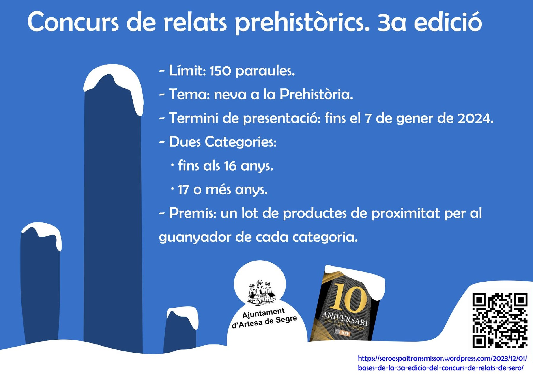 Seró Espai Transmissor organitza la tercera edició del «Concurs de Relats prehistòrics». La convocatòria pretén estimular la creació literària i, amb ella, ajudar a transmetre el factor humà que hi ha rere les comunitats prehistòriques que ens van llegar els objectes que formen part de col·lecció del centre.