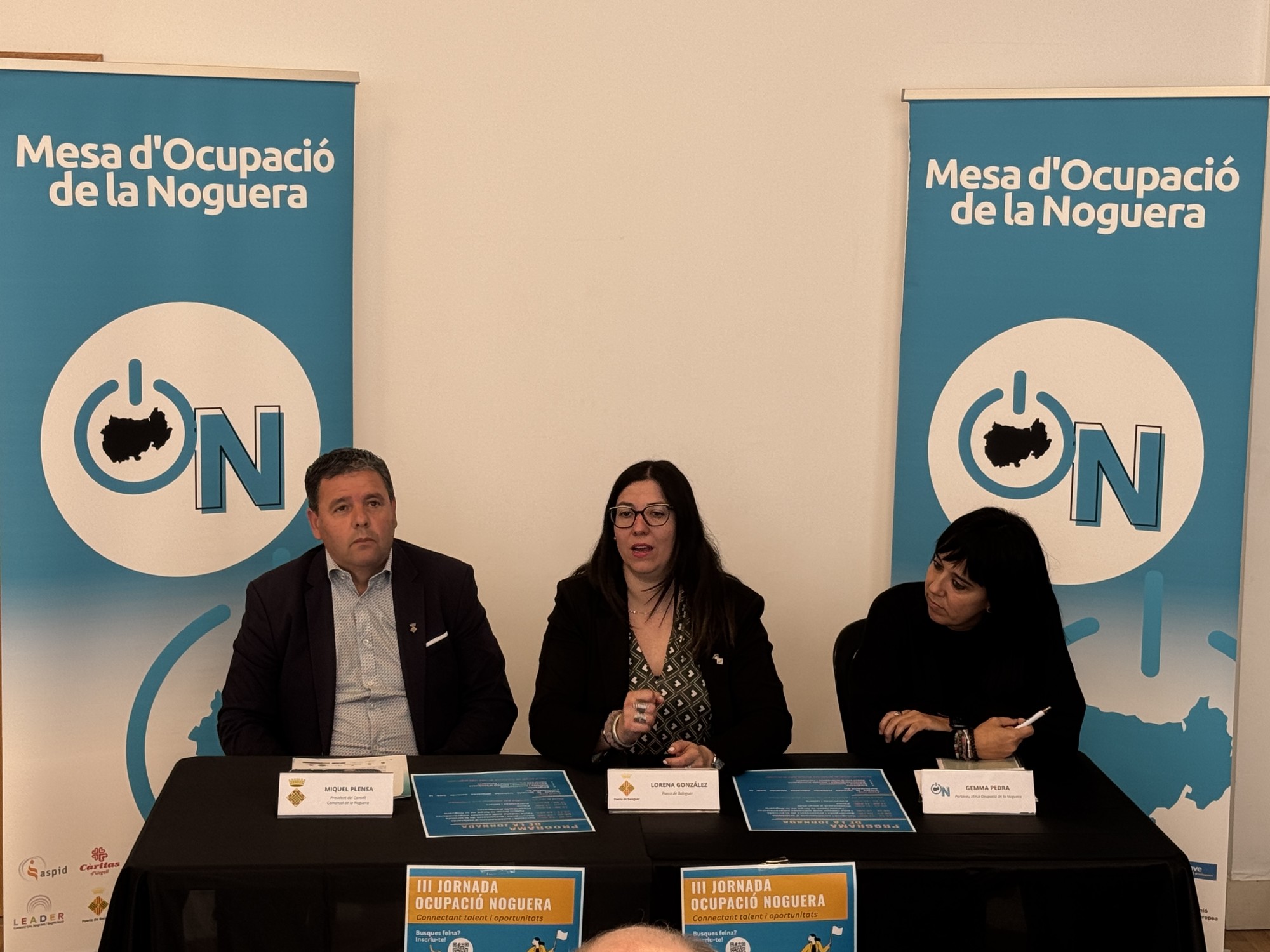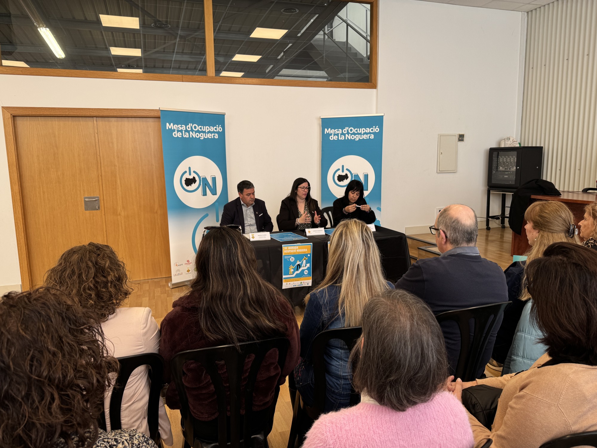 La presentació de la jornada s’ha fet aquest dimecres amb la presència de: Lorena González, paera en cap de Balaguer; Miquel Plensa, president del Consell Comarcal de la Noguera; i Gemma Pedra, portaveu de la Mesa d’Ocupació de la Noguera, entre altres tècnics de les entitats que en formen part.
