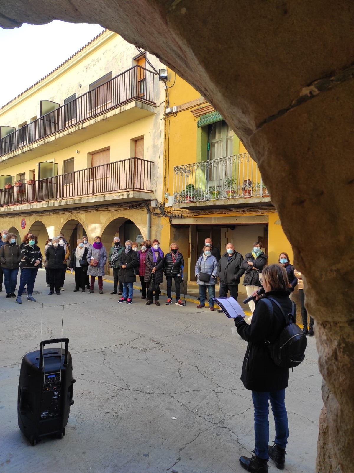 Trobada d'una vuitantena de lectors dels grups de lectura de Lleida a Menàrguens per fer una ruta literària i veure un espectacle poeticomusical dedicat a Joan Barceló