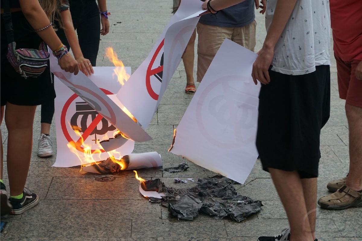 Acte seguit s'ha procedit a cremar algunes imatges, com a símbol de rebuig, mentre des dels assistents es proferien crits en contra de la monarquia i també algunes proclames antifeixistes.