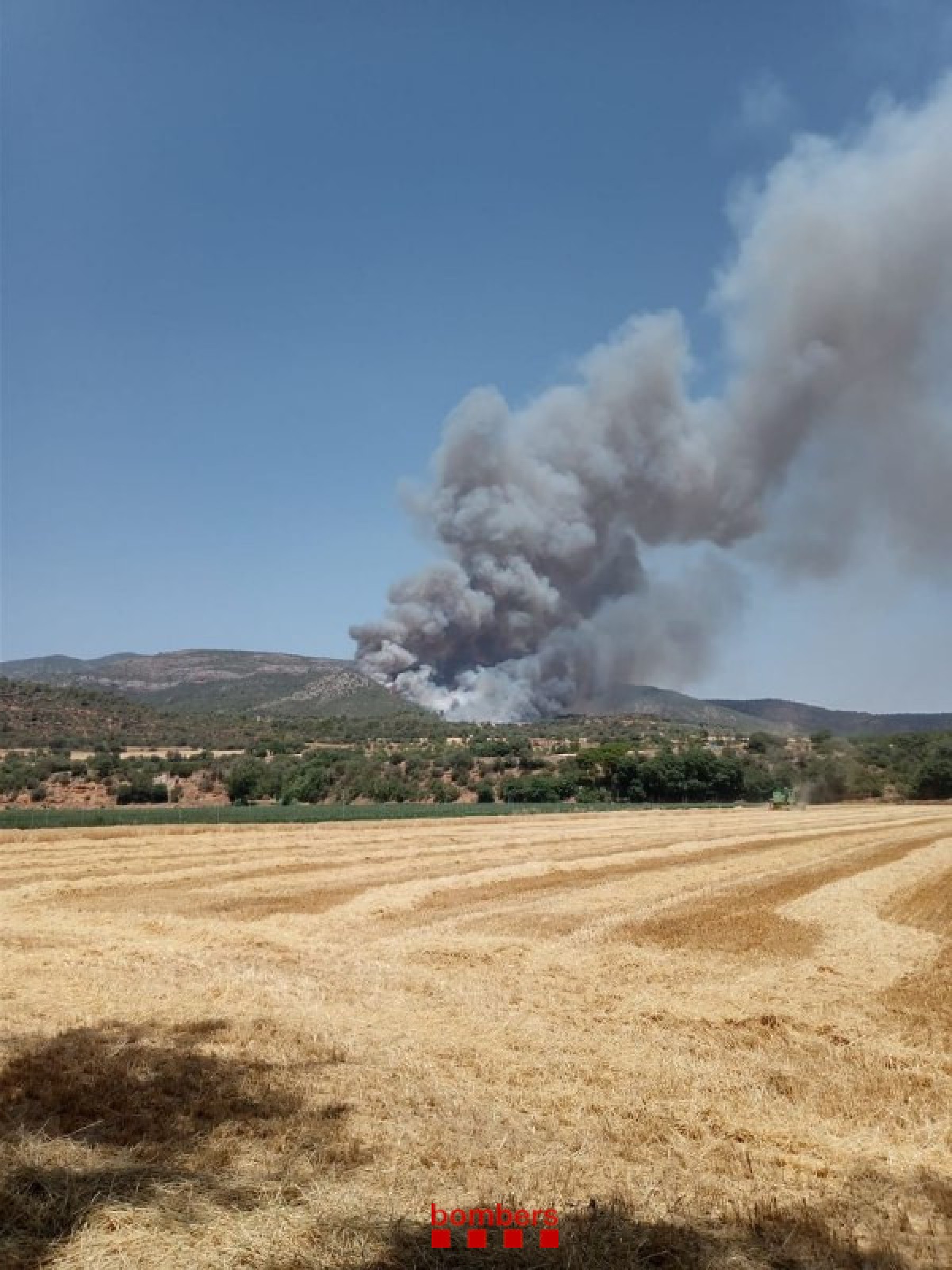 Les altres temperatures i l'evolució de les flames han fet que els bombers vagin incrementant progressivament el dispositiu desplegat, i a les 2 del migdia ja era de 8 mitjans aeris i 18 dotacions terrestres, que compten amb el suport del Grup d'Actuacions Forestals.