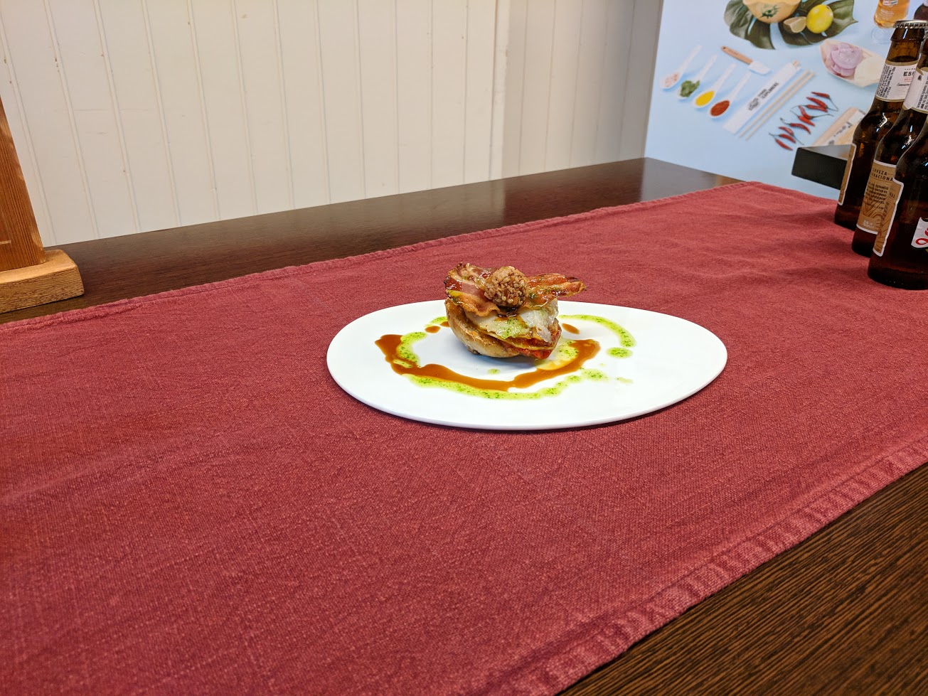 La tapa, anomenada Milfulls de Carpaccio i de la que se n'han servit més de 900 unitats, està formada per un panet cruixent de nous i panses amb melmelada de préssec, pebrot de piquillo, poma confitada, bacallà fumat i cansalada ibèrica, coronat amb un bombó de foie amb fruita seca caramelitzada. La tapa ha obtingut una puntuació de 30,75 sobre 35, destacant el jurat la seva textura, olor, sabors i ingredients.