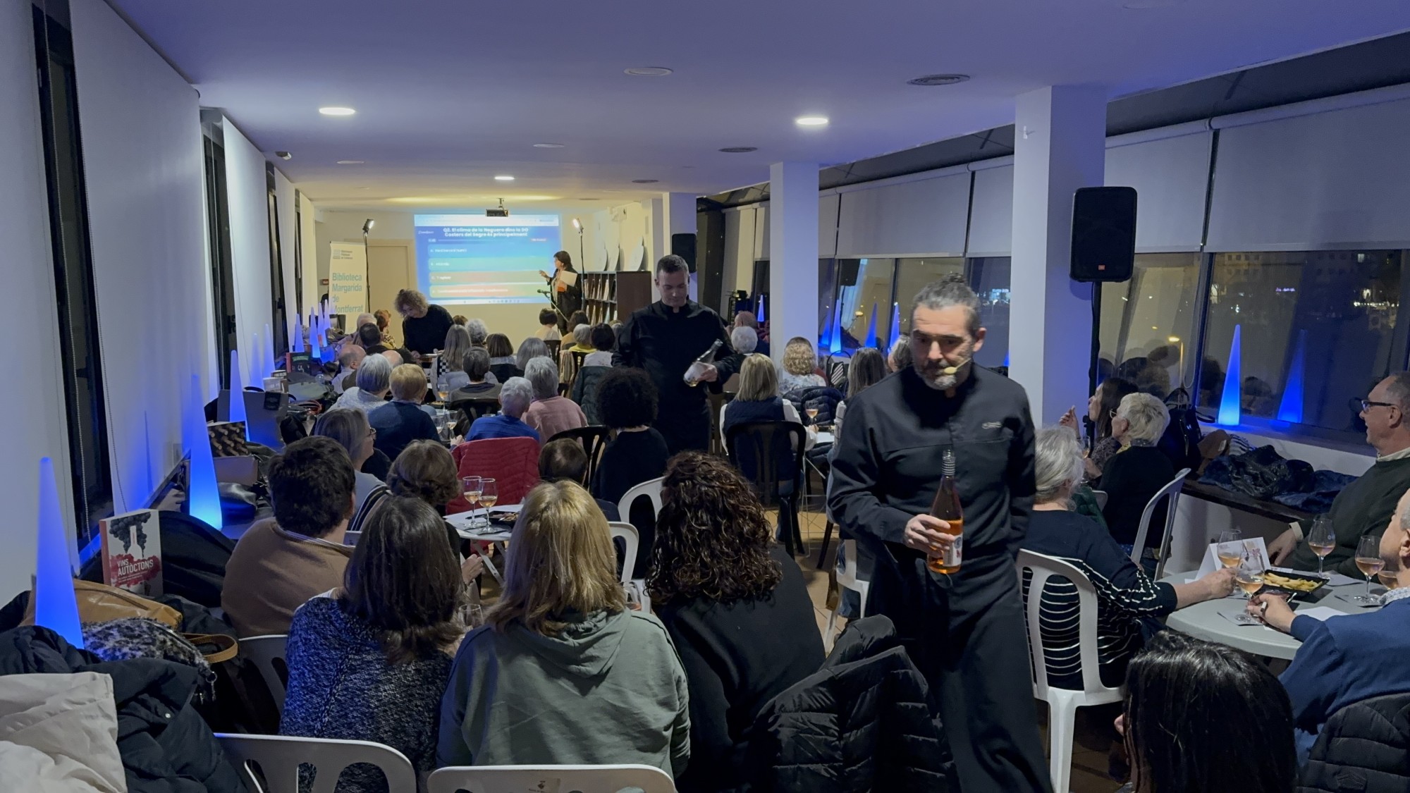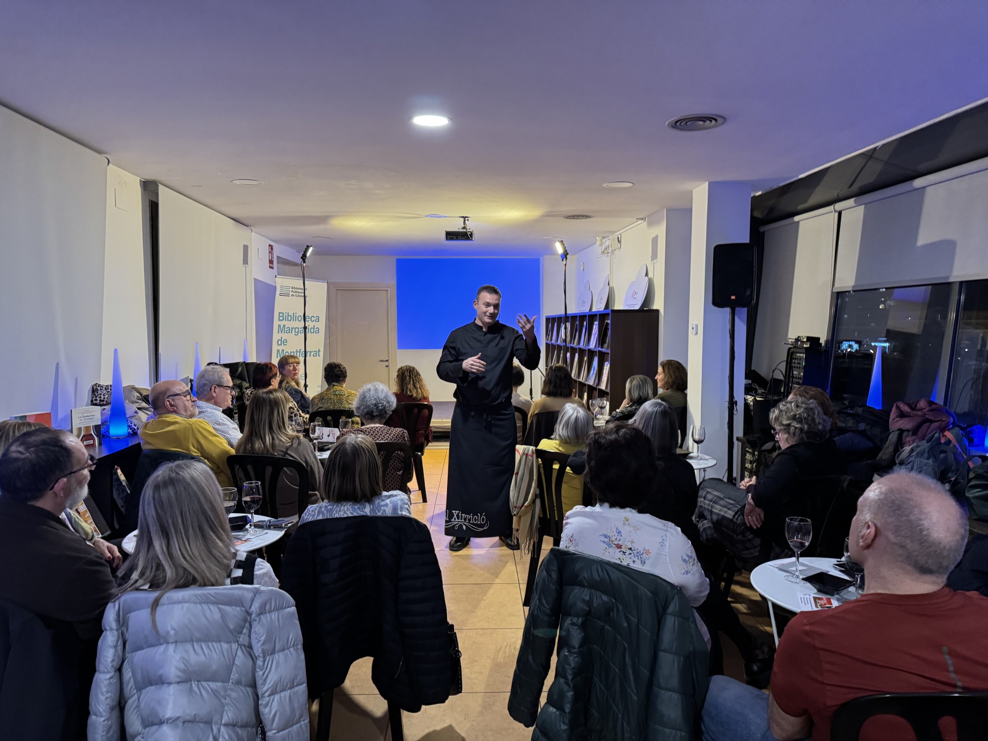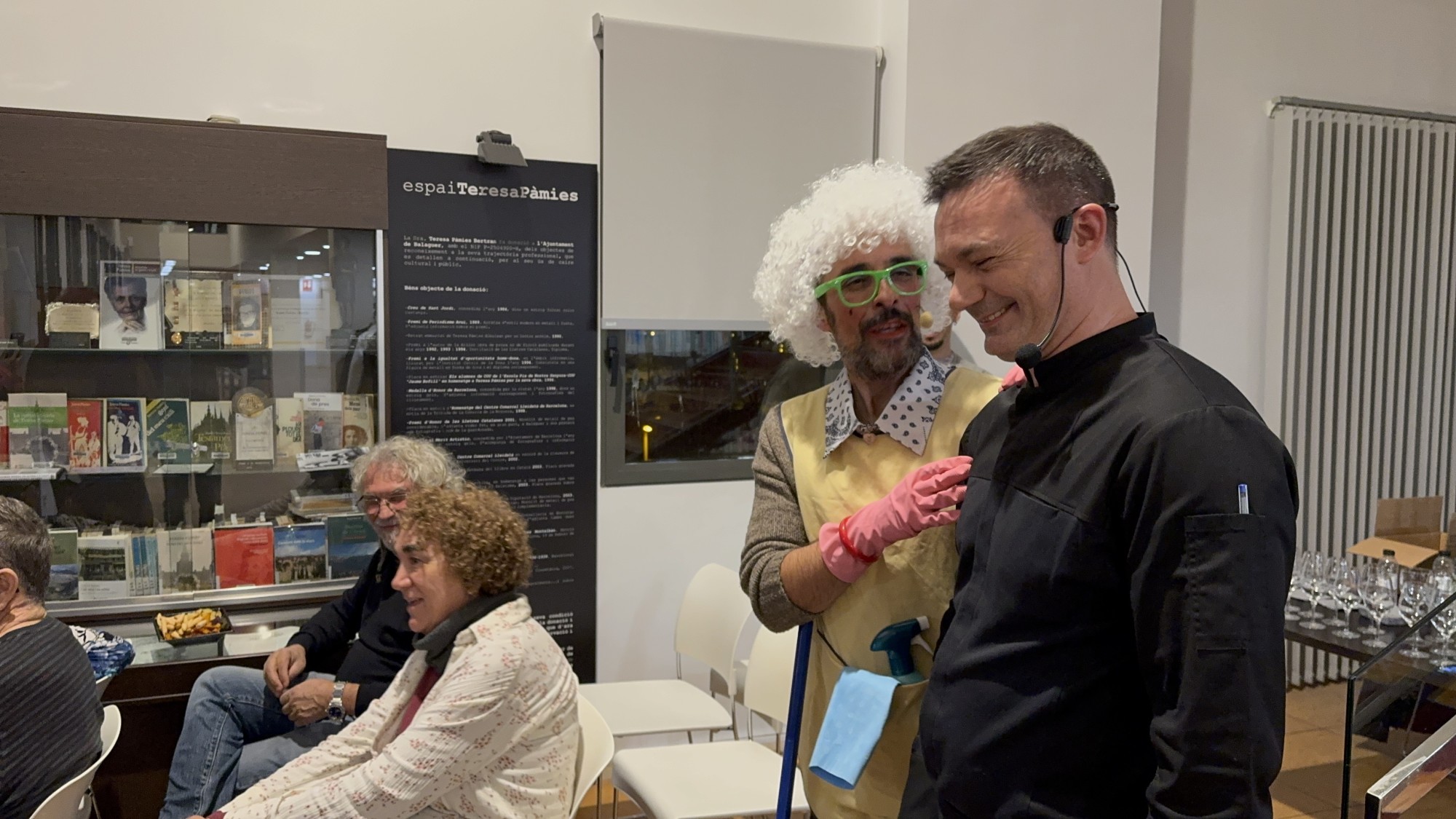 Novament l’activitat ha anat acompanyada d’un tast de diferents vins de la D.O. Costers del Segre a càrrec de Francesc Molins, del restaurant Cal Xirricló. En aquesta ocasió s’ha tastat un vi rosat, el Vola vola papallona, del celler Mas Ramoneda, i un vi negre, el Siós Cau del gat, del celler Costers del Sió.