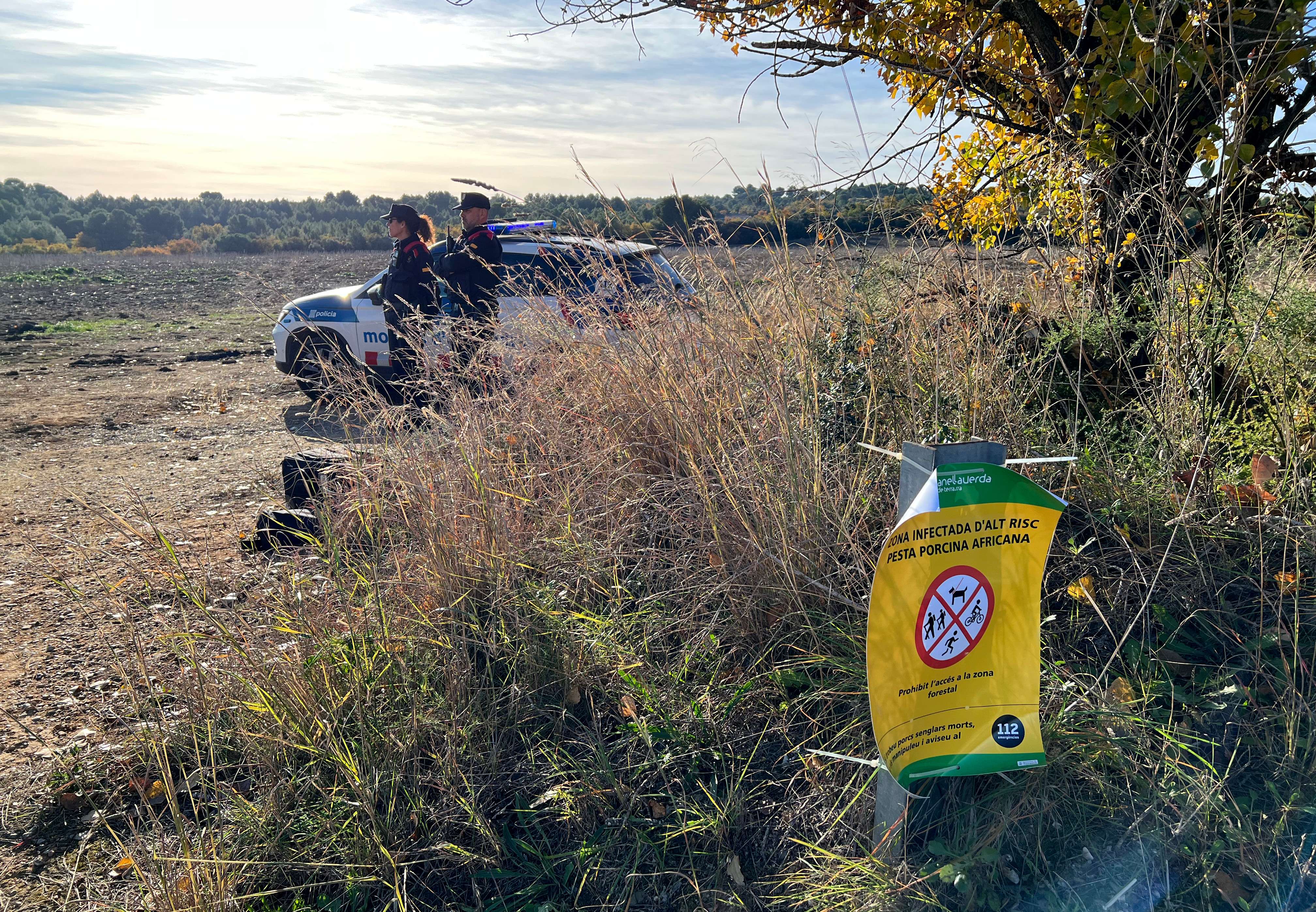Un miler d’efectius coordinats pels Mossos vigilen 79 punts d’accés a la zona infectada, de moment sense sancions. El cos de la Generalitat i la Guardia Civil investiguen conjuntament el possible origen del brot