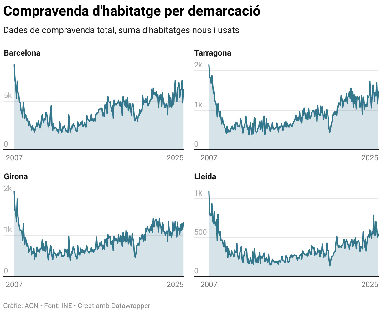 La compravenda d’habitatges tanca el millor setembre de la sèrie històrica amb gairebé 9.500 operacions, un 5,99% més. L’obra nova creix un 16,14%, fins a 1.842, el millor registre en un novè mes de l’any des de 2010