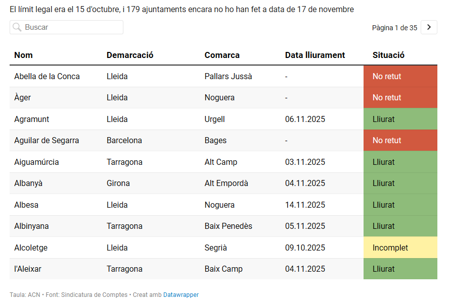 Més d'un terç dels municipis no han lliurat els comptes del 2024 a la Sindicatura dins del termini legal