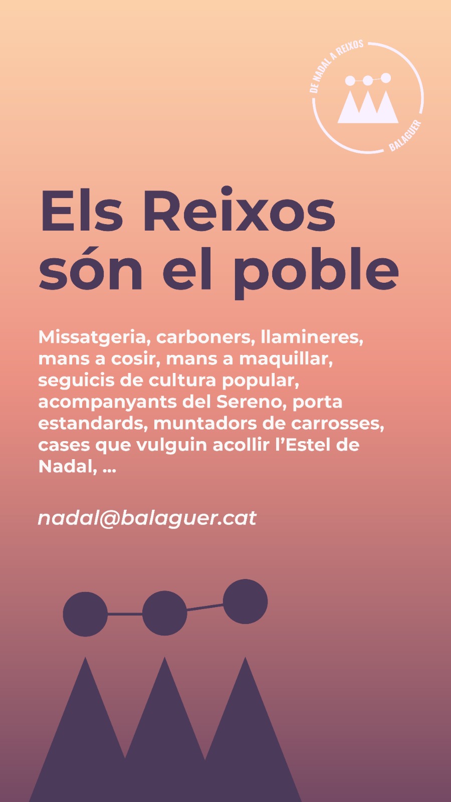 La Paeria de Balaguer busca voluntaris per participar en l’arribada dels Reixos i tot el seu seguici de la Missatgeria, Llamineres, Carboners... i cases que vulguin acollir l’Estel de Nadal