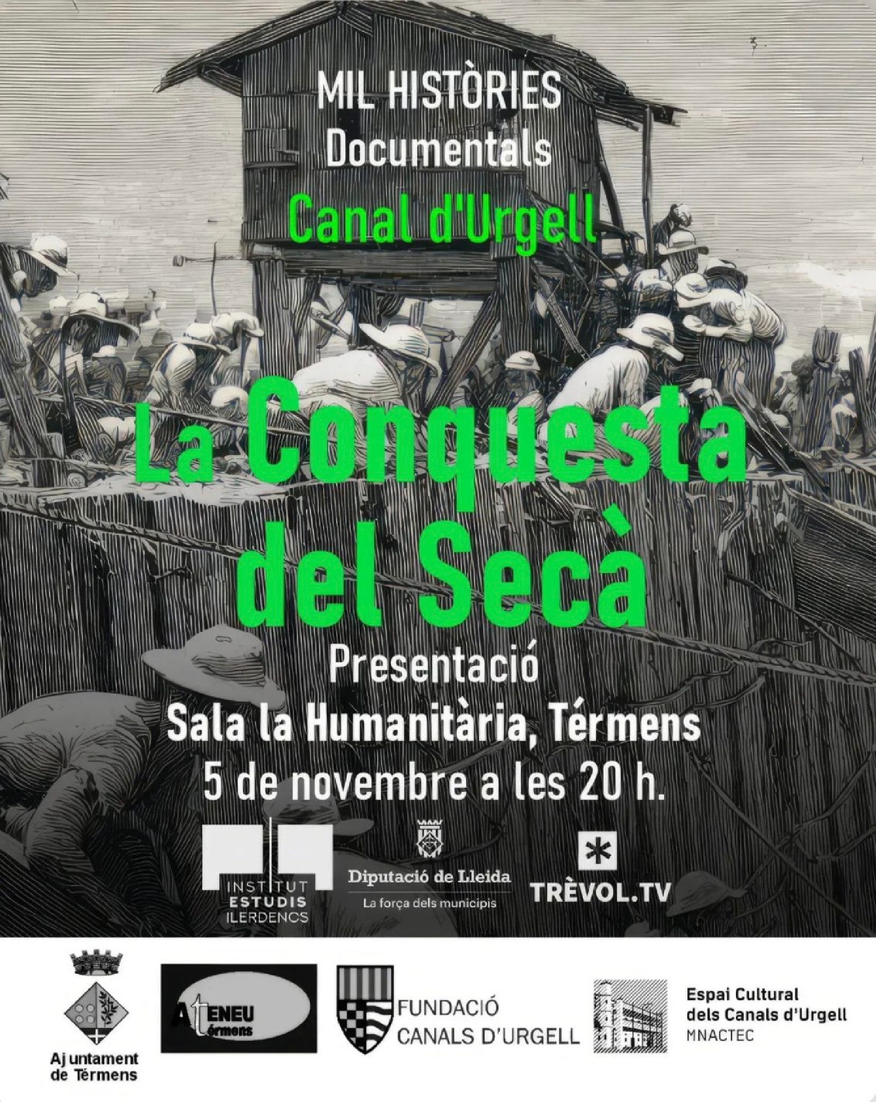 Térmens acull aquest dimecres la projecció del documental La Conquesta del Secà, dedicat a la història del Canal d'Urgell