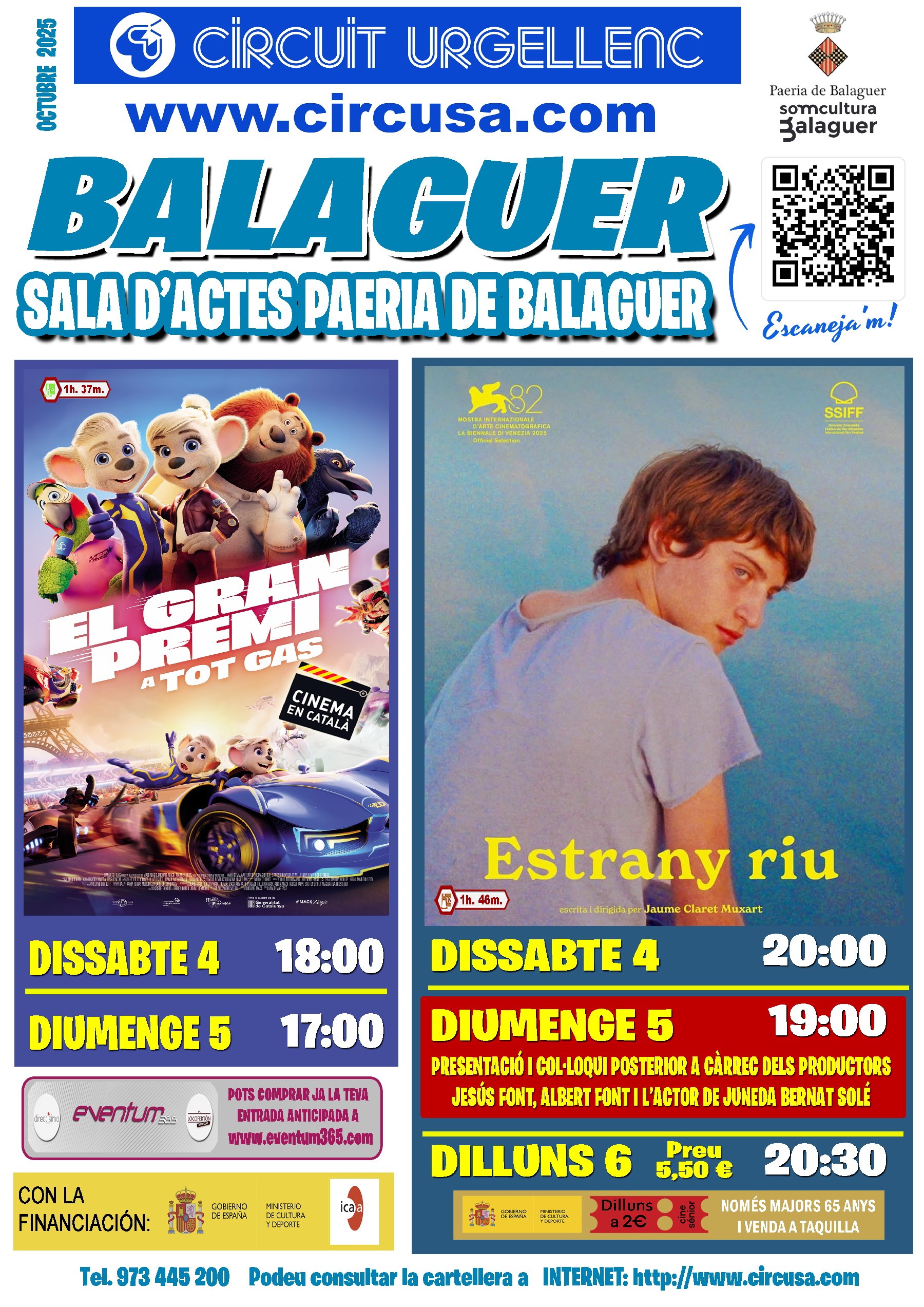 Arriben al Cinema Balaguer la projecció de les pel·lícules: El Gran Premi a Tot Gas i Estrany Riu. La pel·lícula Estrany riu' es projecta aquest diumenge a Balaguer amb un col·loqui amb part de l'equip