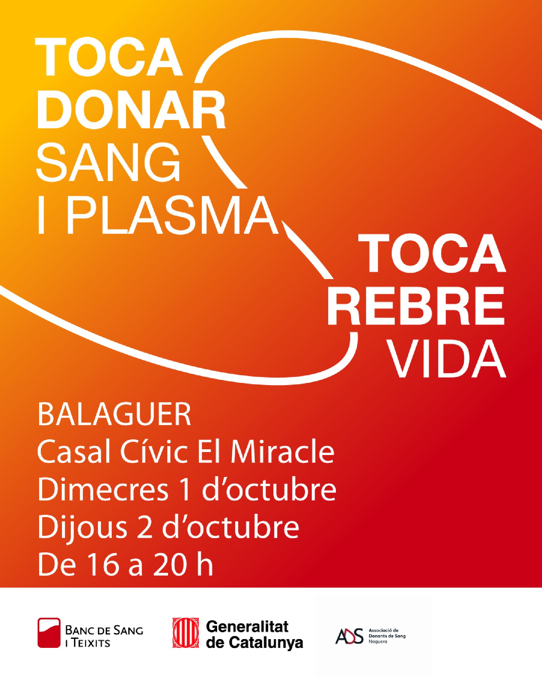 Balaguer acollirà una nova campanya de donació de sang i plasma el pròxims dies 1 i 2 d'octubre