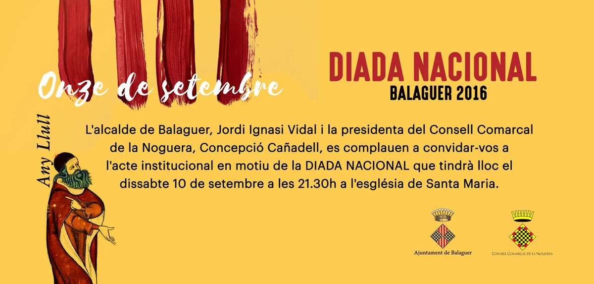 L'Ajuntament de Balaguer i el Consell Comarcal de la Noguera avancen, un any més, l'acte institucional de commemoració de la Diada Nacional de Catalunya al dia 10 de setembre.