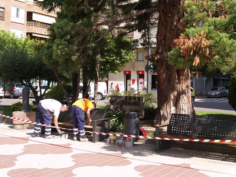Treballadors de l'Ajuntament de Balaguer han iniciat aquest matí els treballs de manteniment del mobiliari urbà de la plaça de la Sardana