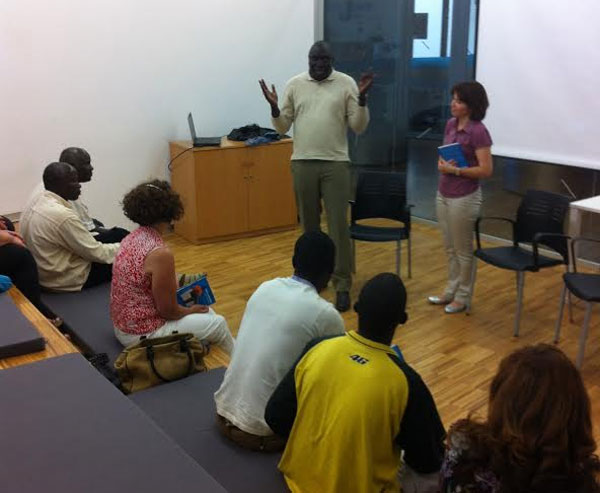 Mactar Thiam Fall explica el seu projecte a Balaguer. L'autor senegalès va presentar ahir la guia de conversa wòlof-català.