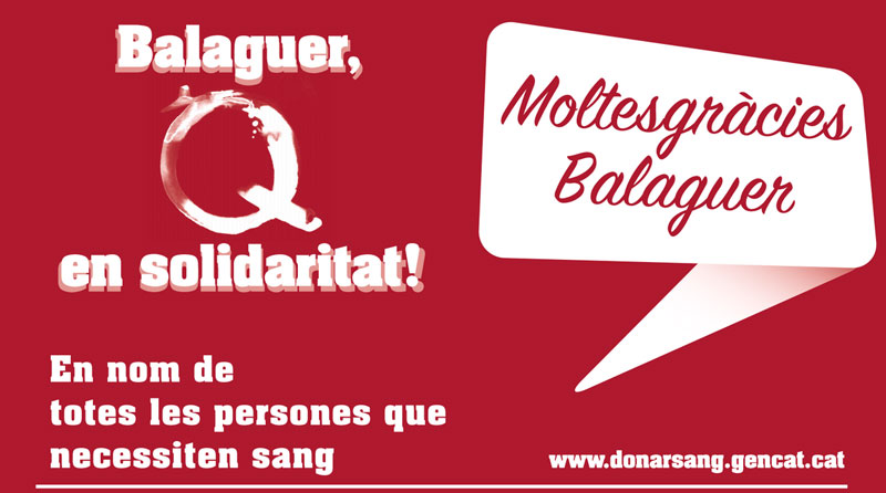 Balaguer acull demà, de 10 a 22h, una nova edició de la Marató de donació de sang. Amb l'eslògan 'Balaguer, Q en solidaritat. Fes-te donant!', el municipi espera assolir un nou rècord de donants.