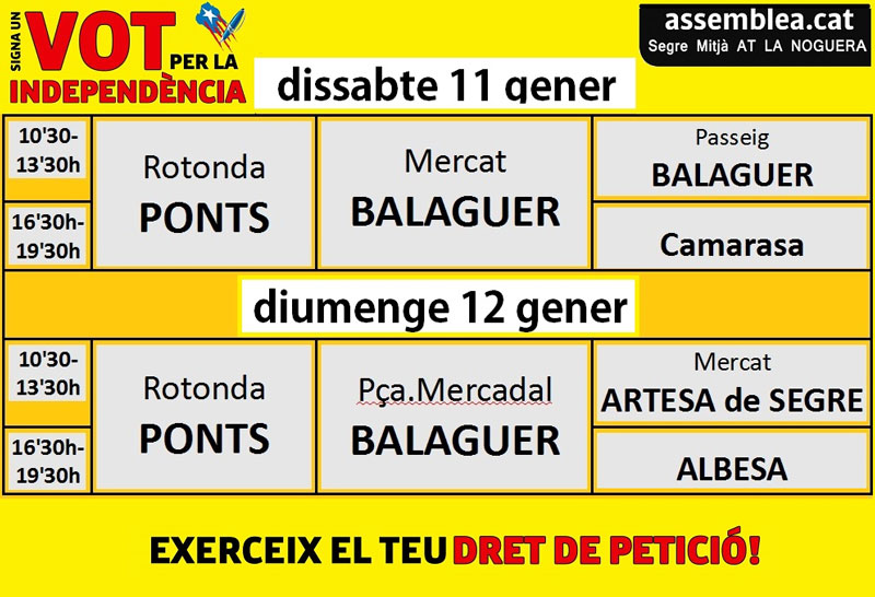 La campanya 'Signa un vot' organitzada per l'Assemblea Nacional Catalana fa aquest cap de setmana la primera recollida de signatures en massa en favor de la independència.