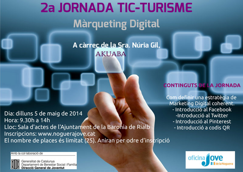 El proper dia 5 de maig tindrà lloc a la sala d'actes de l'Ajuntament de la Baronia de Rialb la segona jornada de TIC Turisme.