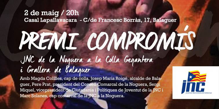 La JNC entrega aquest divendres el Premi Compromís 2014 a la Colla Gegantera i Grallera de Balaguer.