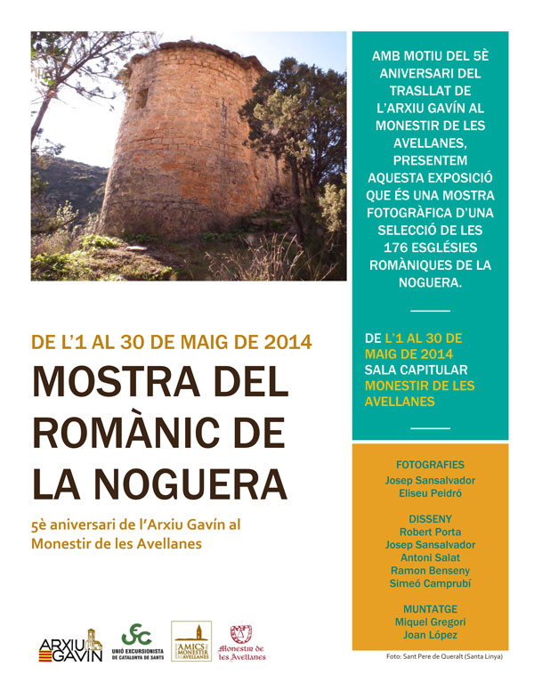 L'Arxiu Gavín inaugura demà al Monestir de les Avellanes l'exposició 'Mostra del romànic de la Noguera'. La mostra s'ha organitzat en motiu del 5è aniversari del trasllat de l'Arxiu Gavín al Monestir.