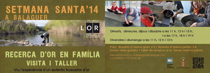 El Centre d'Interpretació de l'Or de Balaguer organitza visites guiades i tallers per Setmana Santa. Les diferents activitats estan adreçades al públic en general i a tots aquells curiosos que vulguin viure l'experiència d'un autèntic buscador d'or.
