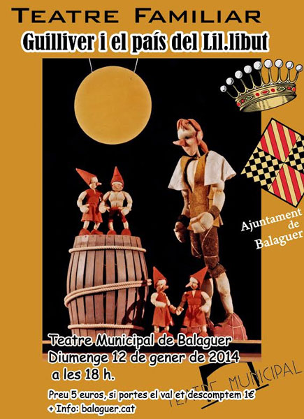 Aquest proper diumenge continua el cicle de teatre infantil al teatre municipal de Balaguer amb l'obra 'Gulliver al país de Lil·liput', una producció del Centre de Titelles de Lleida adreçada a infants i públic familiar.