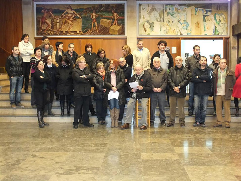 Treballadors i regidors de l'ajuntament de Balaguer s'han concentrat avui al vestíbul del consistori per manifestar la seva posició en contra del projecte de Llei de Racionalització i Sostenibilitat de l'Administració.