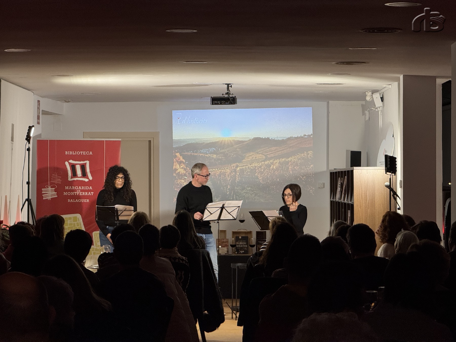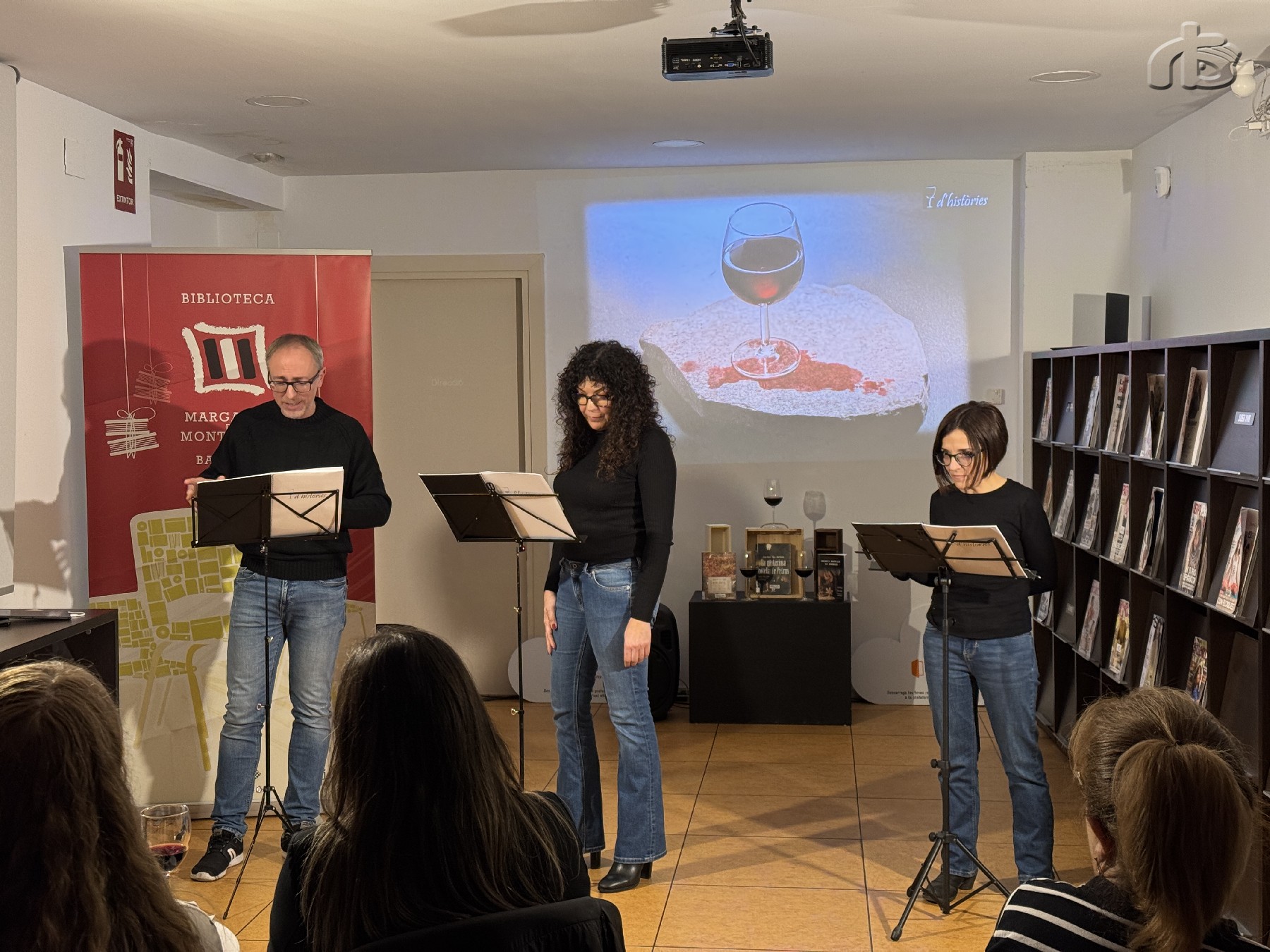 Aquesta es la darrera activitat per a públic adult del cicle Biblioteques amb D.O. La proposta d'aquest dimecres ha estat acompanyada del tast de diferents vins de la D.O. Costers del Segre a càrrec de Francesc Molins, del restaurant Cal Xirricló. Avui s'han degustat els vins: Vola vola papallona, un vi rosat de Mas Ramodena, i Petit Baldomà, de Vall de Baldomar.